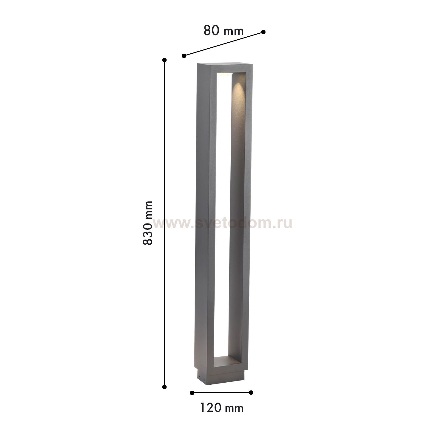 Уличный столб с серым прямоугольным каркасом, в верхней части LED-модуль, защита IP65 Серия