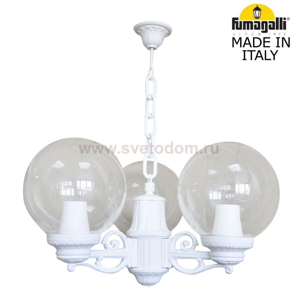Касаемо артикула G25.120.S30.WXE27 важно знать - Подвесной уличный светильник FUMAGALLI серии GLOBE 250, модельGLOBE 250/SICHEM 3L. Подвесной светильник-люстра из трех фонарей GLOBE 250 на консолях BISSO. Используются для архитектурного освещения в стиле "классика". Место установки уличных люстр - арки, галереи, садовые беседки, веранды, лоджии и другие места где требуется и возможна установка подвесных фонарей. Возможна установка внутри любых помещений в качестве основного или декоративного светильника. Изготовлены в Италии, по уникальным технологиям "FUMAGALLI" из современного композитного полимера RESIN. Этот материал в 5 раз прочнее металла, не ржавеет, не окисляется, не выгорает на солнце, его не нужно красить. Все светильники пыле-влаго защищены по стандарту IP65 (Пыленепроницаемые, защита от водяных струй с любого направления). Рассеиватель выполнен из антивандального, не мутнеющего и не горючего PMMA (ПолиМетилМетаАкрилат). Срок службы светильника - не менее 20 лет. Температура использования от -60 до +90. В серии GLOBE 250 есть фонари в настенном (BISSO/GLOBE 250, OFIR/GLOBE 250, MIRRA/GLOBE 250, PORPORA/GLOBE 250) подвесном (SICHEM/GLOBE 250) и наземном исполнении (IAFAET.R/GLOBE 250, ALOE.R/GLOBE 250, ARTU/GLOBE 250, GIGI/GLOBE 250, RICU/GLOBE 250, RICU/ISSO/GLOBE 250 1L, RICU/ISSO/GLOBE 250 2L, RICU/ISSO/GLOBE 250 3L) со столбами разной высоты, с разным количеством и конфигурацией голов. Консоли настенных фонарей и кронштейны светильников на столбах освщения могут устанавливаться вверх/вниз. Столбы выше 150 см имеют в основе мощную стальную трубу с двойной оцинковкой. При заказе требуется выбрать цвет корпуса, цвет плафона и тип патрона. По стилю и дизайну серия уличных светильников GLOBE 250 похожа на светильники большого размера GLOBE 400 и на светильники среднего размера GLOBE 300.