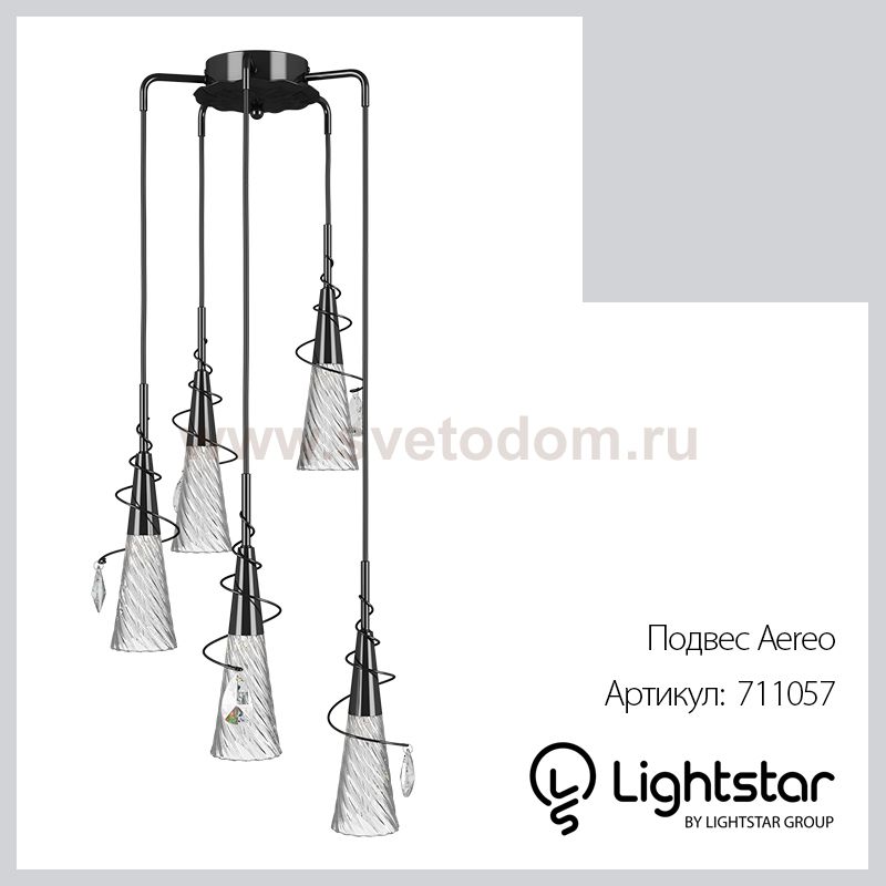 Подвесная люстра Aereo выполнена в стиле Арт-деко. Направленный свет создается за счет пяти стеклянных плафонов, смотрящих вниз. Черный металлический каркас подчеркивает необычную форму светильника, а спиралевидные дополнения с хрустальными каплями на концах, добавляют люстре индивидуальности. Подвесной светильник Lightstar 711057 сразу же привлечет внимание Ваших гостей благодаря стильному исполнению. Благородный дизайн позволит использовать эту модель практически в любом интерьере. Она обеспечит достаточно света и при этом легко монтируется. Чтобы купить подвесной светильник Lightstar 711057, воспользуйтесь формой на нашем сайте или позвоните менеджерам интернет-магазина.