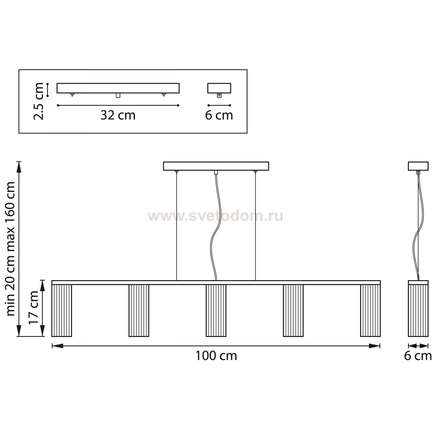 Высота min-max (см): 20-160; Ширина (см): 100*60; Вес (кг): 2,2; Кол-во ламп: 5xGU10; Мощность max (W): 28; Цвет основания/цвет стекла или абажура: Champagne Gold; Штрих-код