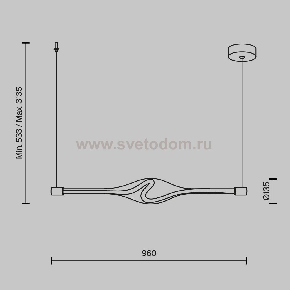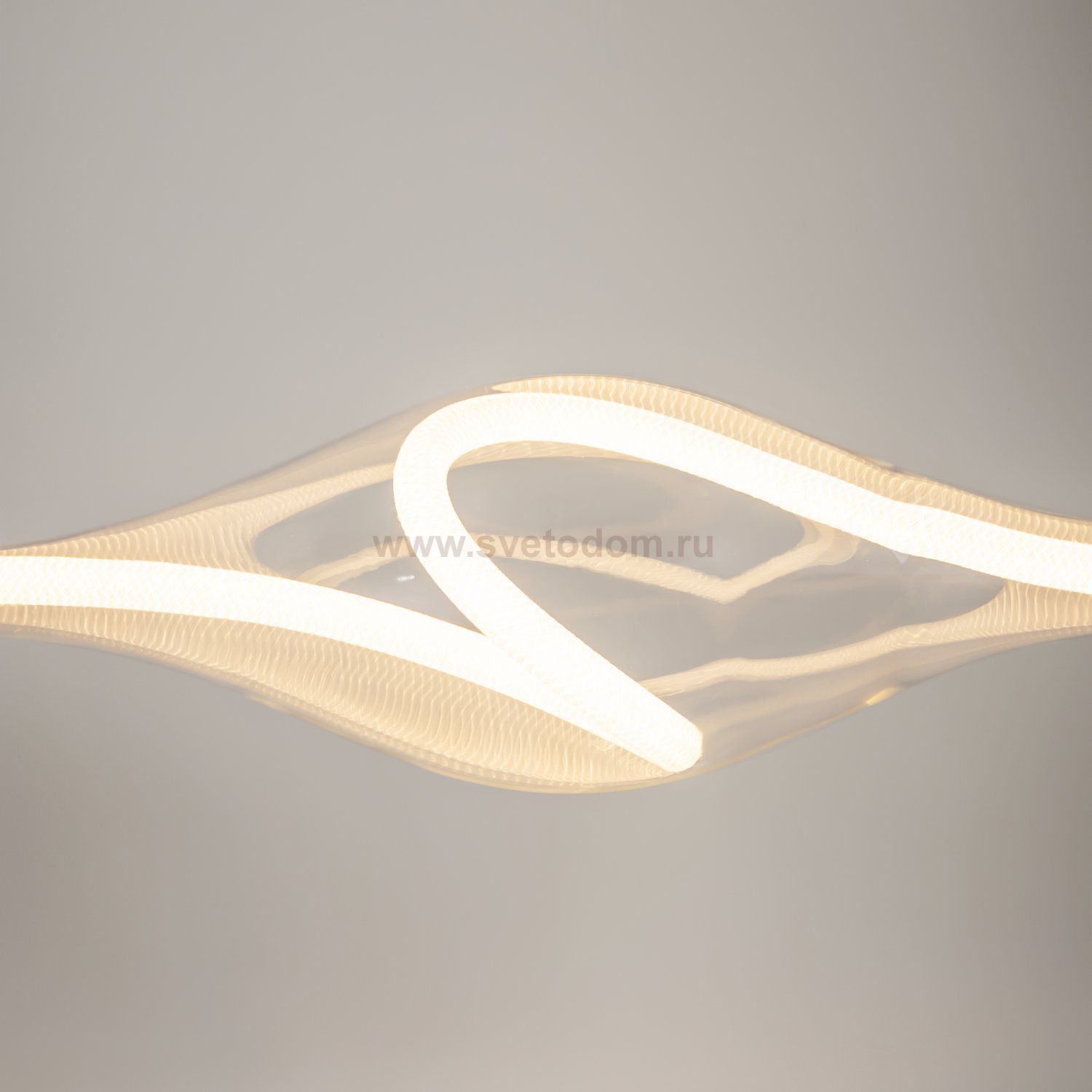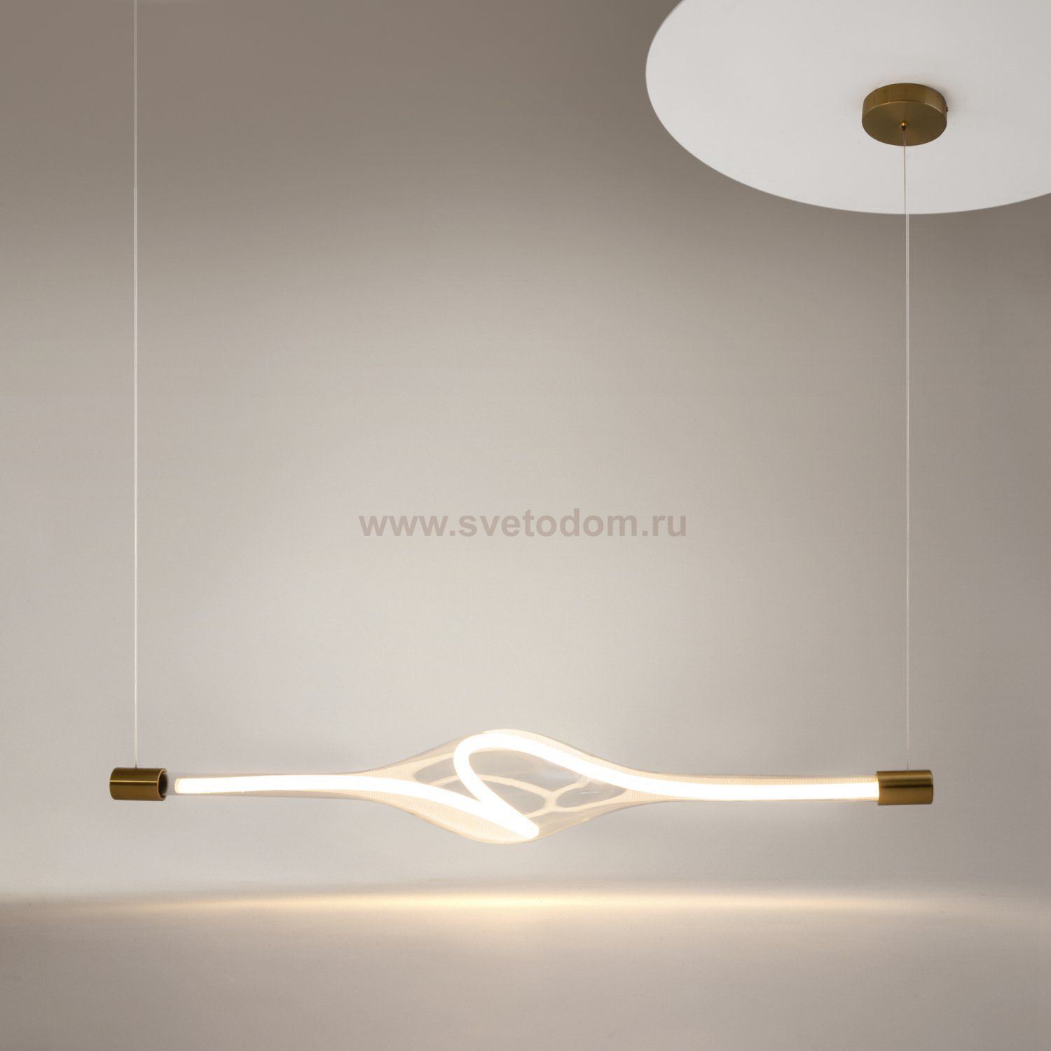 Арматура из металла в цвете латуни, плафоны — прозрачное стекло. LED-источник света в виде светодиодного тканевого шнура, цветовая температура 3000К и угол рассеивания 360°. Трендовая форма петли светодиодного шнура. Тросы подвесов регулируются по высоте до трех метров. Могут использоваться как основной источник света.