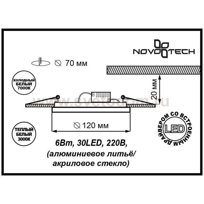 Встраиваемый светодиодный светильник со встроенным драйвером модели Novotech 357317 из серии LAGO отличается следующим качеством: Светильник выполнен из акрилового стекла. Акриловое стекло обладает рядом преимуществ, например:- высокая прозрачность (92%, которая сохраняет свой цвет и не меняется с течением времени); - отсутствие осколков при ударе (прочность оргстекла в 5 раз выше, чем у простого стекла); - водостойкость; - легкость материала (оргстекло гораздо легче, почти в 2,5 раза, по сравнению с обычным стеклом); - высокая пропускная способность ультрафиолетовых лучей, которая составляет около 73%.