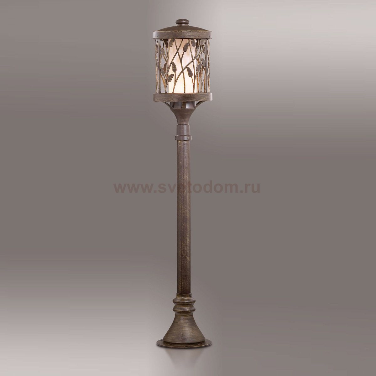 Уличный светильник 2287/1A линии Lagra выполнен в стиле модерн. Цвет покрытия металла: коричневый с золотой патиной. Плафон состоит из нескольких толстых матовых стекол, снаружи украшенный декоративной решеткой с изящным узором в виде тонких стеблей с бутонами. Имеется степень защиты IP44. Цоколь E27. Мощность 1*100W. Нет ламп в комплекте.