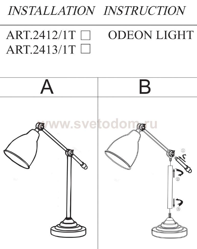 Купить настольную лампу Odeon light 2413/1T Вы можете с помощью виртуальной «Корзины» или по контактным номерам, указанным на сайте.