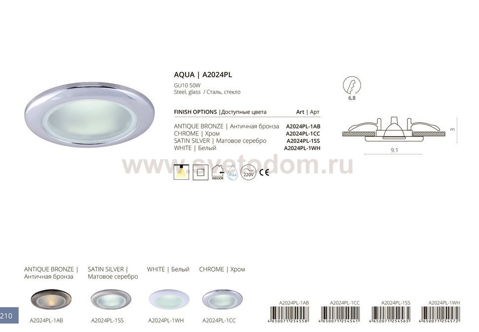 IP44, штамповка, патрон GU10 в комплекте Комментарий