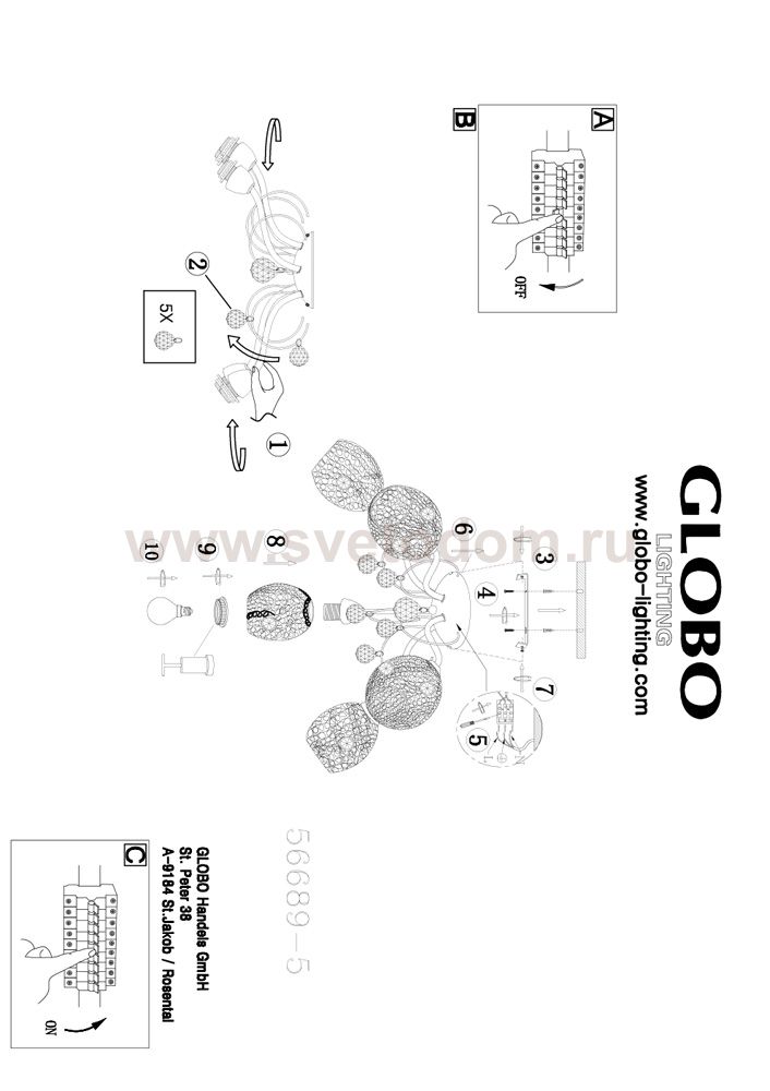 Компания «Светодом» предлагает широкий ассортимент люстр от известных производителей. Представленные в нашем каталоге товары выполнены из современных материалов и обладают отличным качеством. Благодаря широкому ассортименту Вы сможете найти у нас люстру под любой интерьер. Мы предлагаем как классические варианты, так и современные модели, отличающиеся лаконичностью и простотой форм. Стильная люстра Globo 56689-5 станет украшением любого дома. Эта модель от известного производителя не оставит равнодушным ценителей красивых и оригинальных предметов интерьера. Люстра Globo 56689-5 обеспечит равномерное распределение света по всей комнате. При выборе обратите внимание на характеристики, позволяющие приобрести наиболее подходящую модель. Купить понравившуюся люстру по доступной цене Вы можете в интернет-магазине «Светодом».