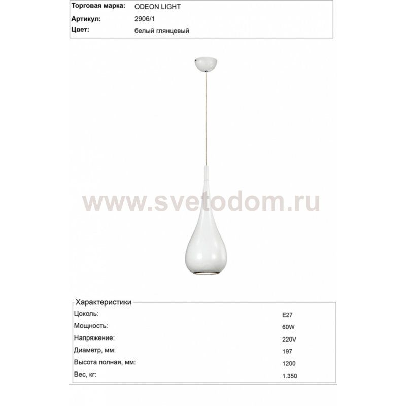 2906/1 PENDANT ODL16 310 белый глянцевый/металл Подвес Е27 60W 220V DROP Штрих-код