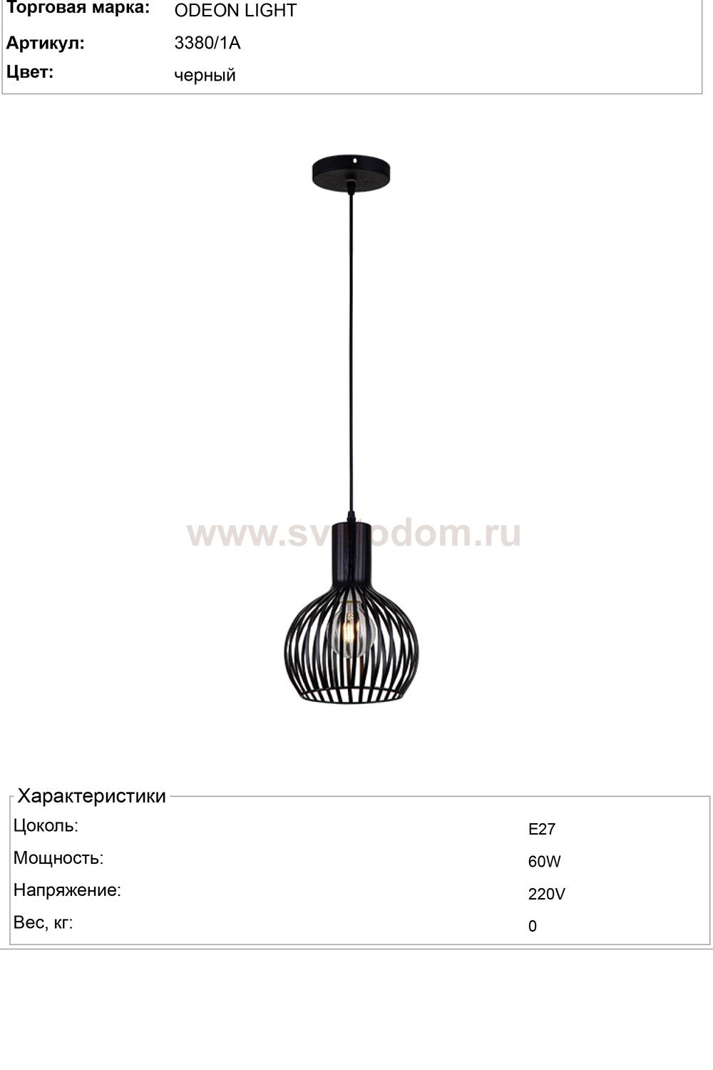 3380/1A PENDANT ODL17 317 черный Подвес E27 60W 220V LUVI Штрих-код