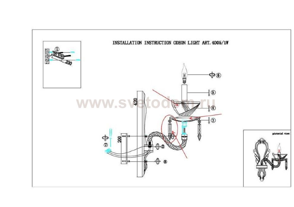 арматура, декор: металл, стекло, хрустальные подвески; плафон: стекло Комментарий