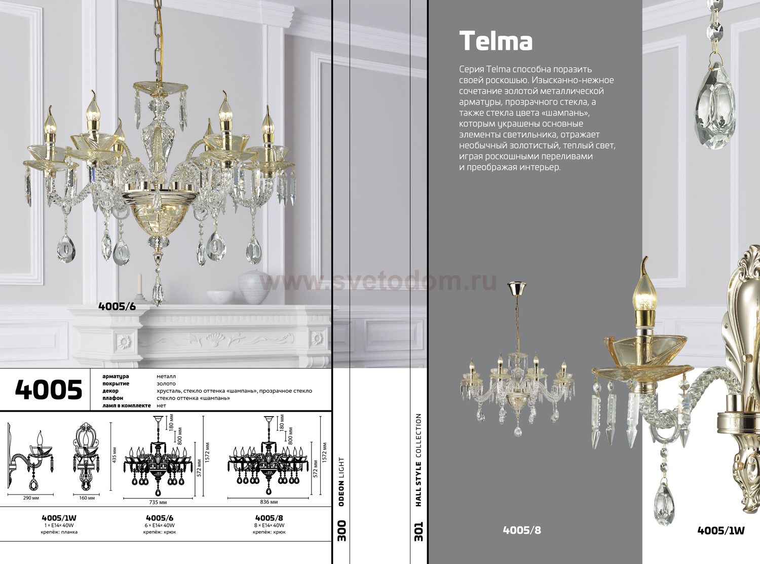 Удивительная модель 4005/1W от фабрики Odeon light (Италия) серии TELMA представляет собой настенный светильник, выполненный по технически выверенным чертежам и эскизам итальянских дизайнеров. Подходит как для бытового, так и для общественного использования со стандартными и диодными лампами.