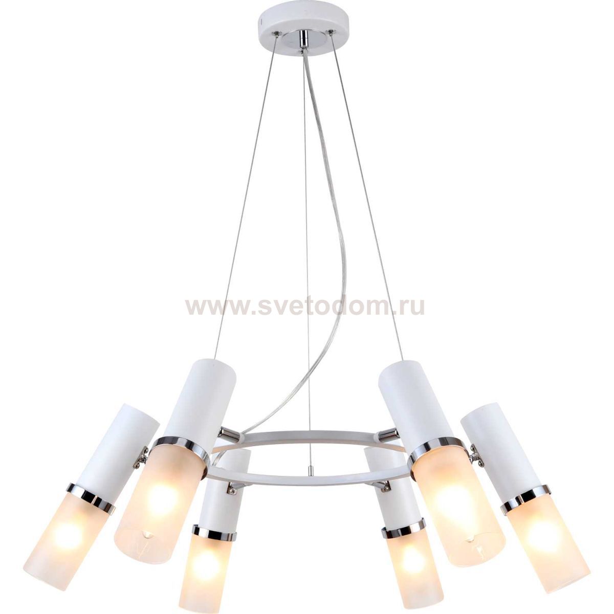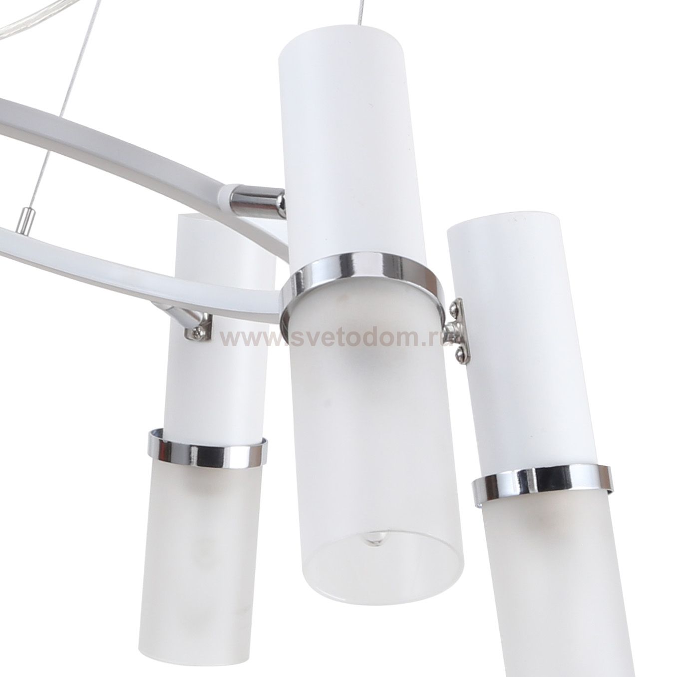 Люстра подвесная 2005/01/06P Stilfort, серия Trevo, цвет арматуры- белый, цвет плафонов - белый и хром, лампы - 5*E14*40W, материал арматуры - металл, материал плафонов - стекло