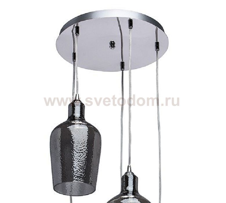354018705 - это Ценителям современных тенденций придется по душе стильный светильник из коллекции «Лоск». Металлическое основание цвета хрома дополнено плафонами-подвесами оригинальной формы. Они выполнены из рельефного глянцевого стекла модного дымчатого оттенка. Светильник станет необычным акцентом в интерьере городского жителя.
