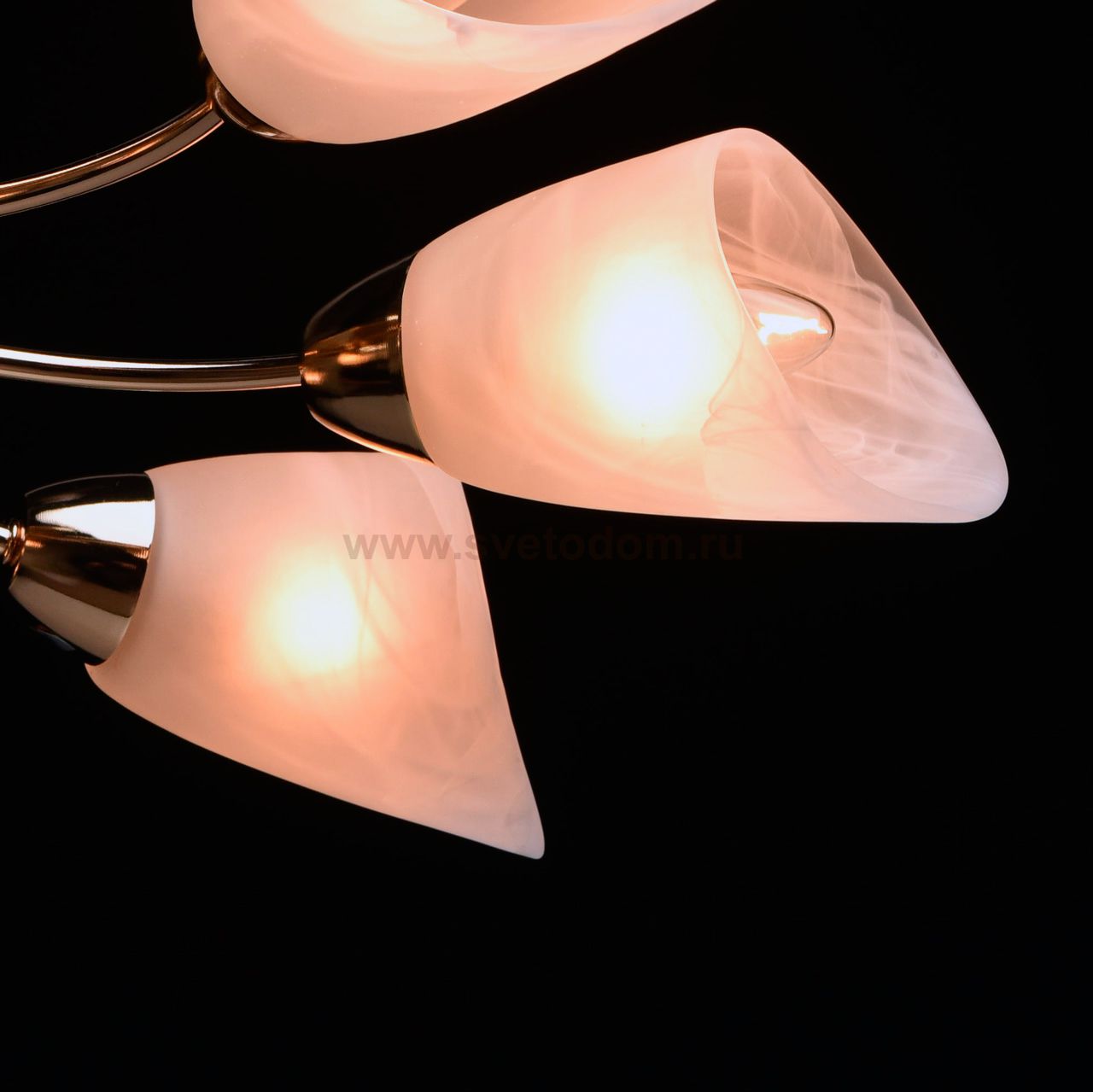 Металлическое основание золотого цвета, плафоны из алебастрового стекла Место применения