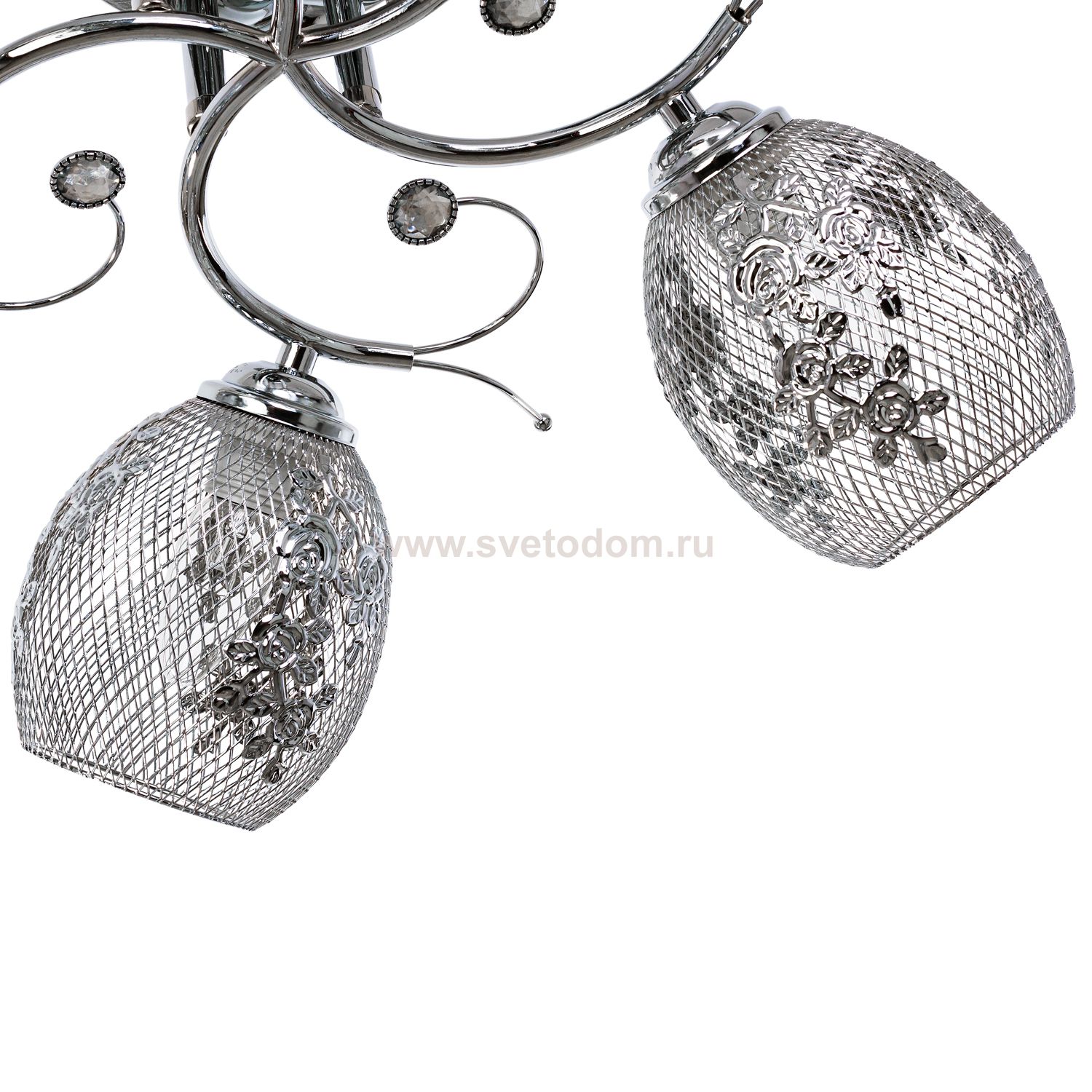 Потолочный светильник 51155/5CR CR от бренда ЭкономСвет. Каркас выполнен из материала металл, цвет хром. Плафоны (светорассеиватели) выполнены из материала металл, цвет хром. Цоколь E27 рассчитан на лампы максимальной мощности до 40 Вт, а максимальная площадь освещения составит до 11 м?.