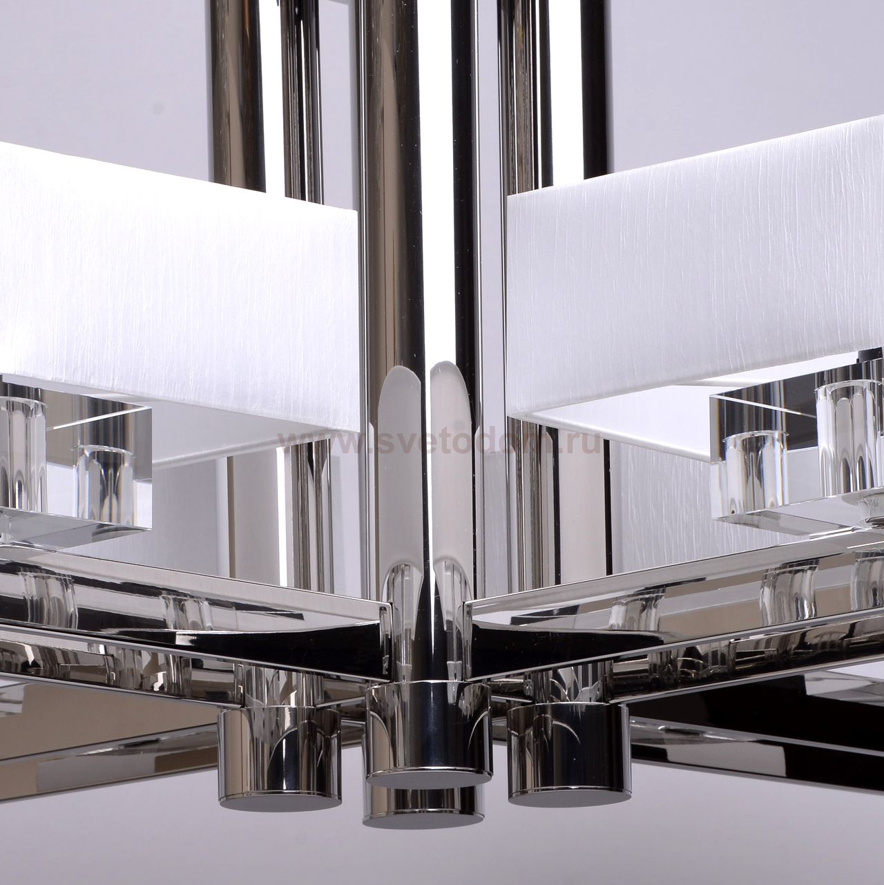 Металлическое основание цвета хрома, текстильные абажуры, хрусталь Материал плафона