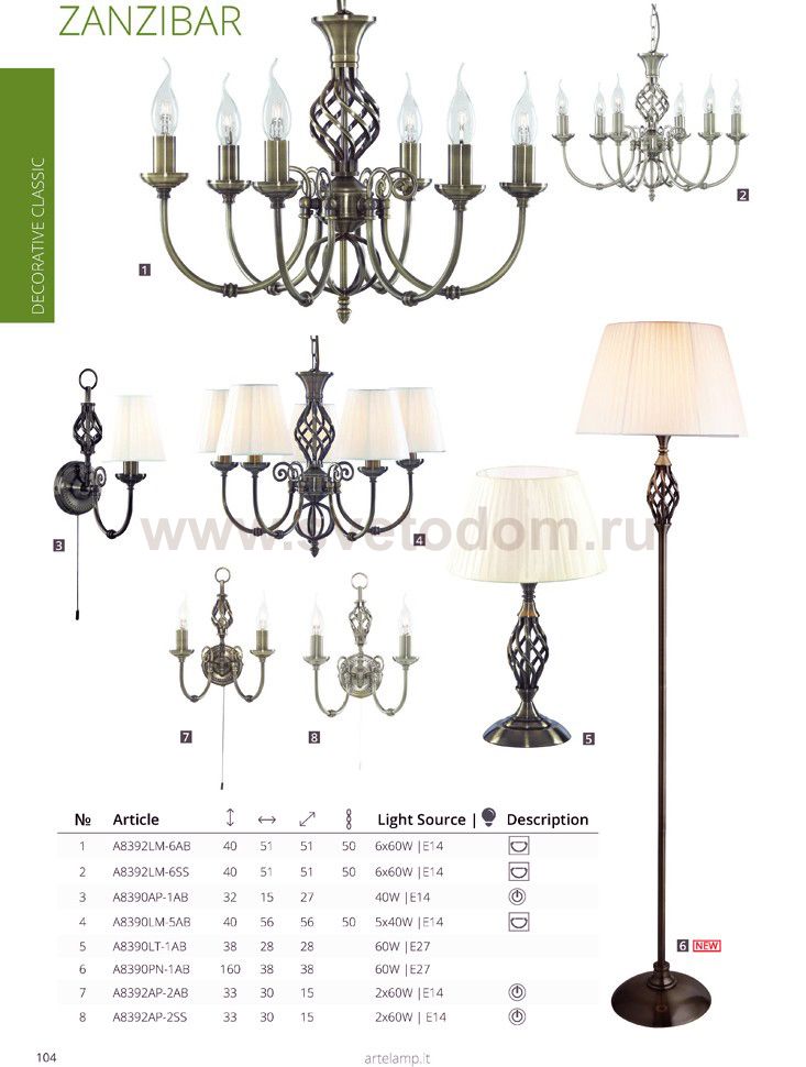 Компания «Светодом» предлагает широкий ассортимент люстр от известных производителей. Представленные в нашем каталоге товары выполнены из современных материалов и обладают отличным качеством. Благодаря широкому ассортименту Вы сможете найти у нас люстру под любой интерьер. Мы предлагаем как классические варианты, так и современные модели, отличающиеся лаконичностью и простотой форм. Стильная люстра Arte lamp A8392LM-6AB станет украшением любого дома. Эта модель от известного производителя не оставит равнодушным ценителей красивых и оригинальных предметов интерьера. Люстра Arte lamp A8392LM-6AB обеспечит равномерное распределение света по всей комнате. При выборе обратите внимание на характеристики, позволяющие приобрести наиболее подходящую модель. Купить понравившуюся люстру по доступной цене Вы можете в интернет-магазине «Светодом».