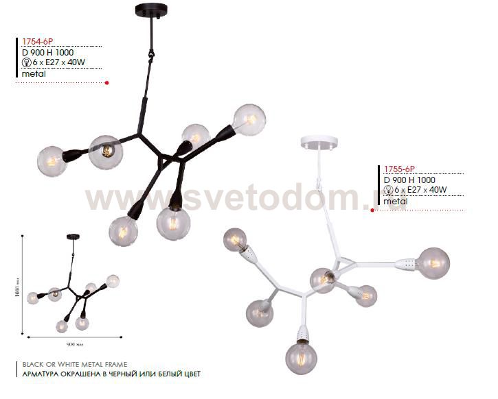 Выбирая модель светильника Favourite 1754-6P, обратите внимание, что каркас черного цвета, лучше использовать лампы крупного размера шарообразной формы. Дополнительная информация в характеристиках или по телефону. |
