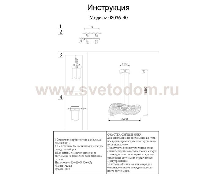 Практически для каждой люстры производитель указывает максимальную мощность лампочки. Это связано с тем, что при работе лампы выделяется значительное количество тепла. Если установить лампу большей мощности, то это может привести к деформации и порче люстры, разрушению патрона.