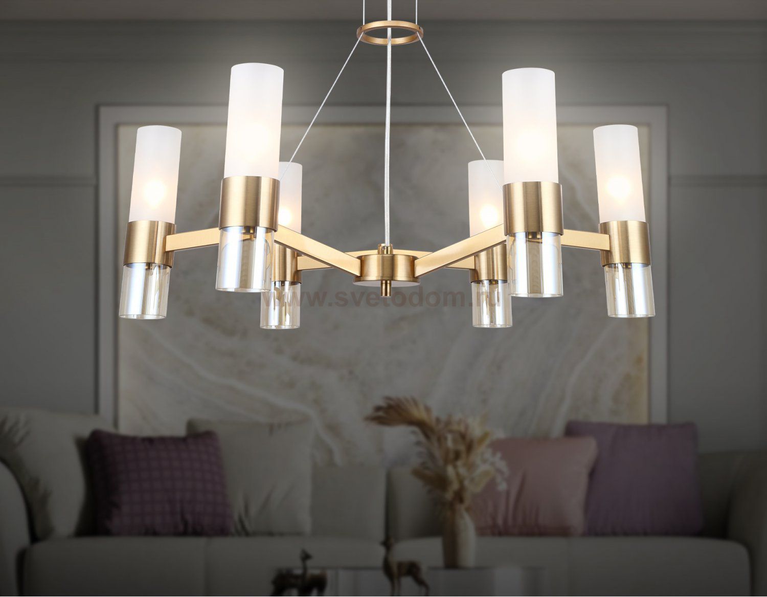 Подвесная люстра из коллекции HIGH LIGHT. Модель LH55114 представлена в стиле модерн. Люстра выполнена из стеклянных плафонов, белого матового и прозрачного янтарного цветов и металлического каркаса цвета латунь. Для данной модели подойдут лампы с цоколем Е14. Люстра будет прекрасным дополнением в любом помещении.