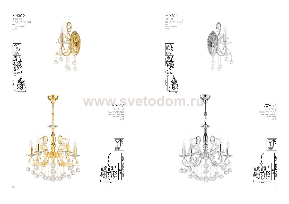 Дополнительно рекомендуем посмотреть другие хрустальные люстры и светильники из данной серии. Модель - люстры Lightstar 708054 замечательно впишется в задуманный Вами интерьер зала, гостиной или спальни. Купите хрустальную люстру уже сегодня и Вы поймете превосходство светильников перед другими направлениями освещения. Основное превосходство хрусталя - это отражение и преломление света во всем пространстве, а отсутствие абажуров не съест получаемый световой поток от горящих ламп!