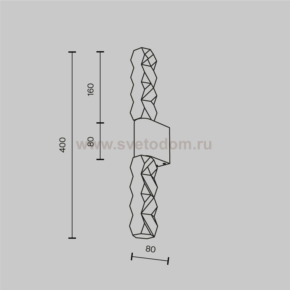 Цвет арматуры — хром, латунь. Материал арматуры — металл. Материал плафона — хрусталь с зигзагообразным орнаментом. Оригинальный дизайн бра в стиле роскошных отелей начала 20 века. Геометрическая форма плафона создает неповторимую игру света на стенах. Возможность вертикальной или горизонтальной установки. Скрытый LED-источник света. Оригинальные модели для создания атмосферы праздника и роскоши в любом интерьере.