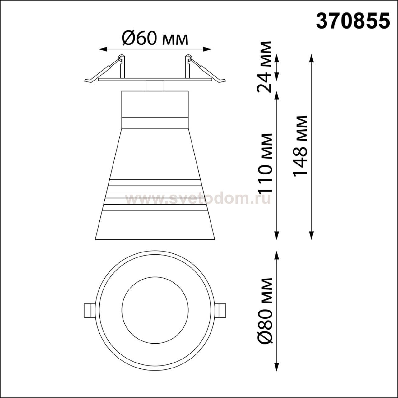 Данный размер указывает какое отверстие необходимо сделать для правильного монтажа. Зачастую светильники выбирают после ремонта и сделанных монтажных отверстий, тогда подбор осуществляется строго в размер +/- 2-5мм.