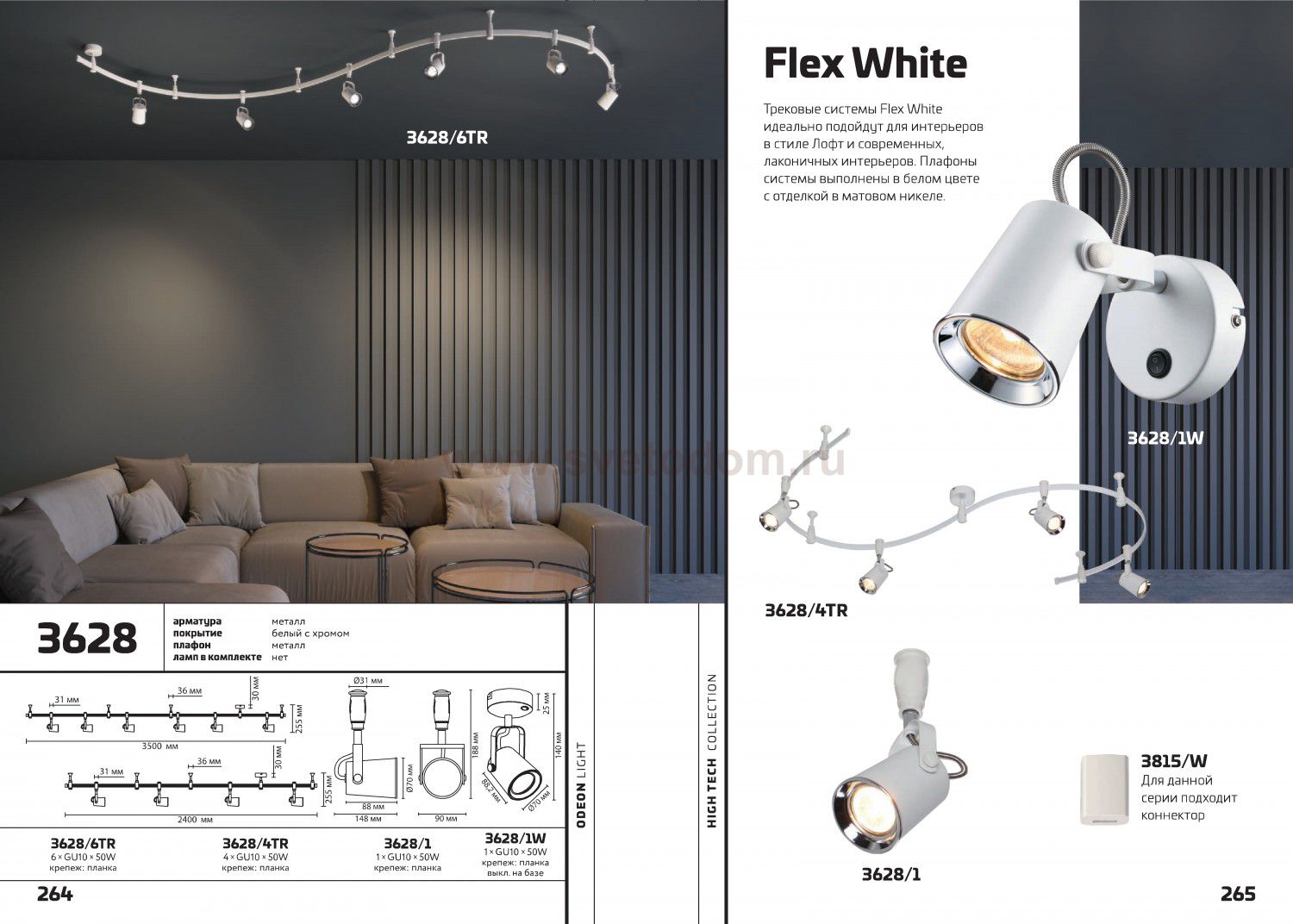 3628/1 MODERN ODL18 263 Плафон для трека IP20 GU10 1*50W 220V FLEXIWHITE Штрих-код