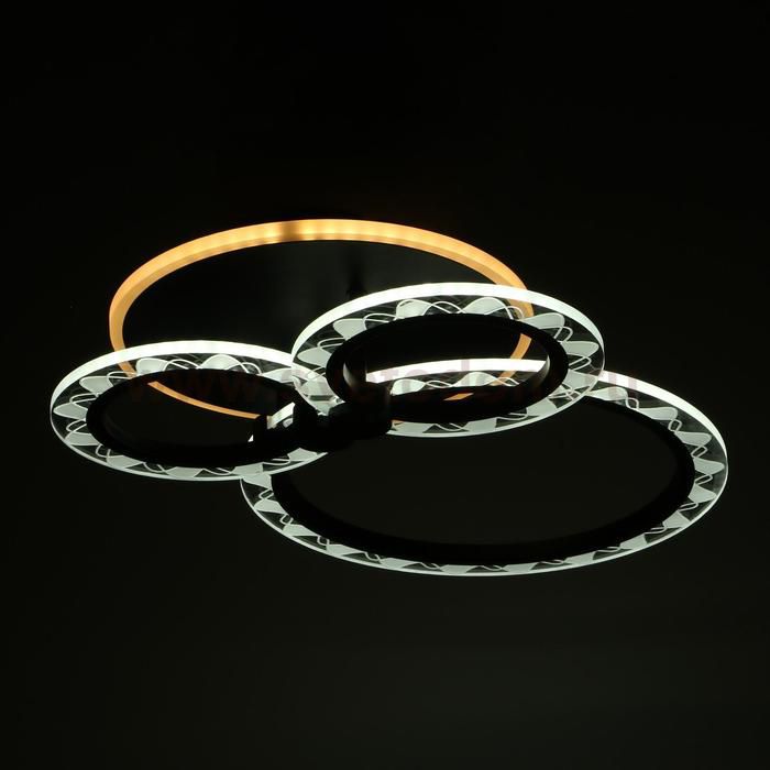 Светодиодный светильник с пультом выполнен в современном стиле. Модная и стильная люстра подойдёт для интерьера детской, гостиной, зала, спальни, прихожей или кухни. С помощью пульта можно плавно регулировать температуру света — от 3 000 до 6 000 К; и яркость — от ночника до полной мощности свечения. Батарейки в комплект не входят. Изделие выполнено из качественного металла, пластика и светодиодов. Срок службы люстры в домашних условиях — 20 000 часов. Подходит для помещений с низкими потолками и для натяжных потолков. Осветит комнату площадью до 9 м?. |