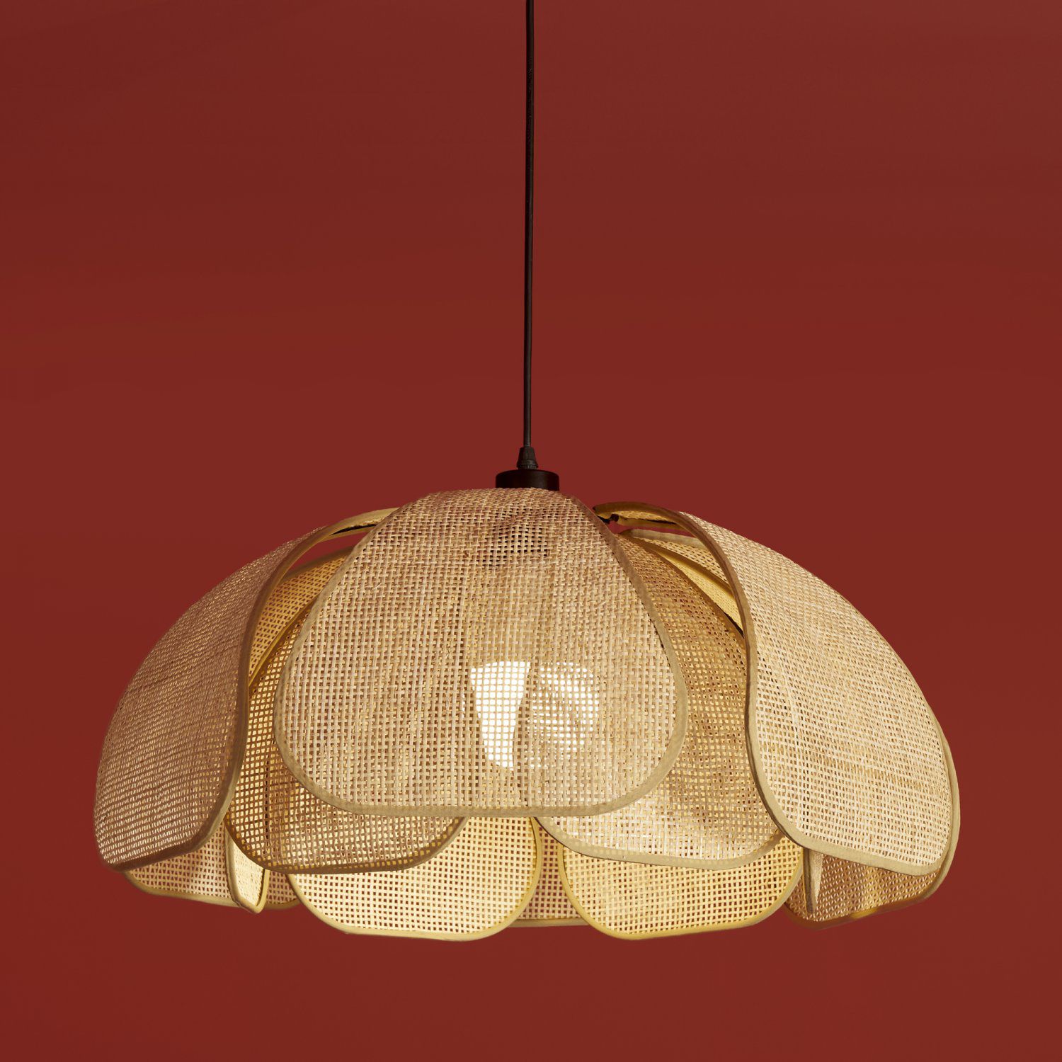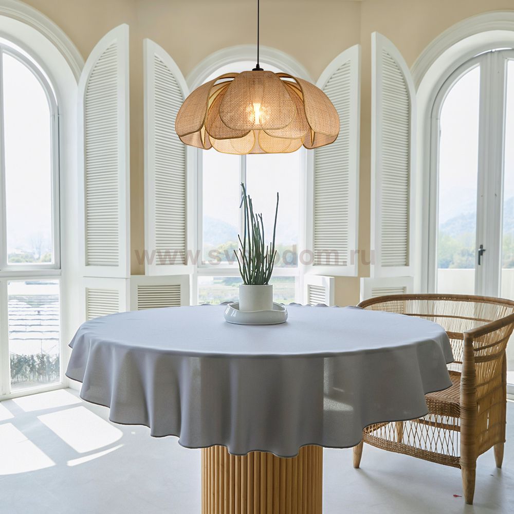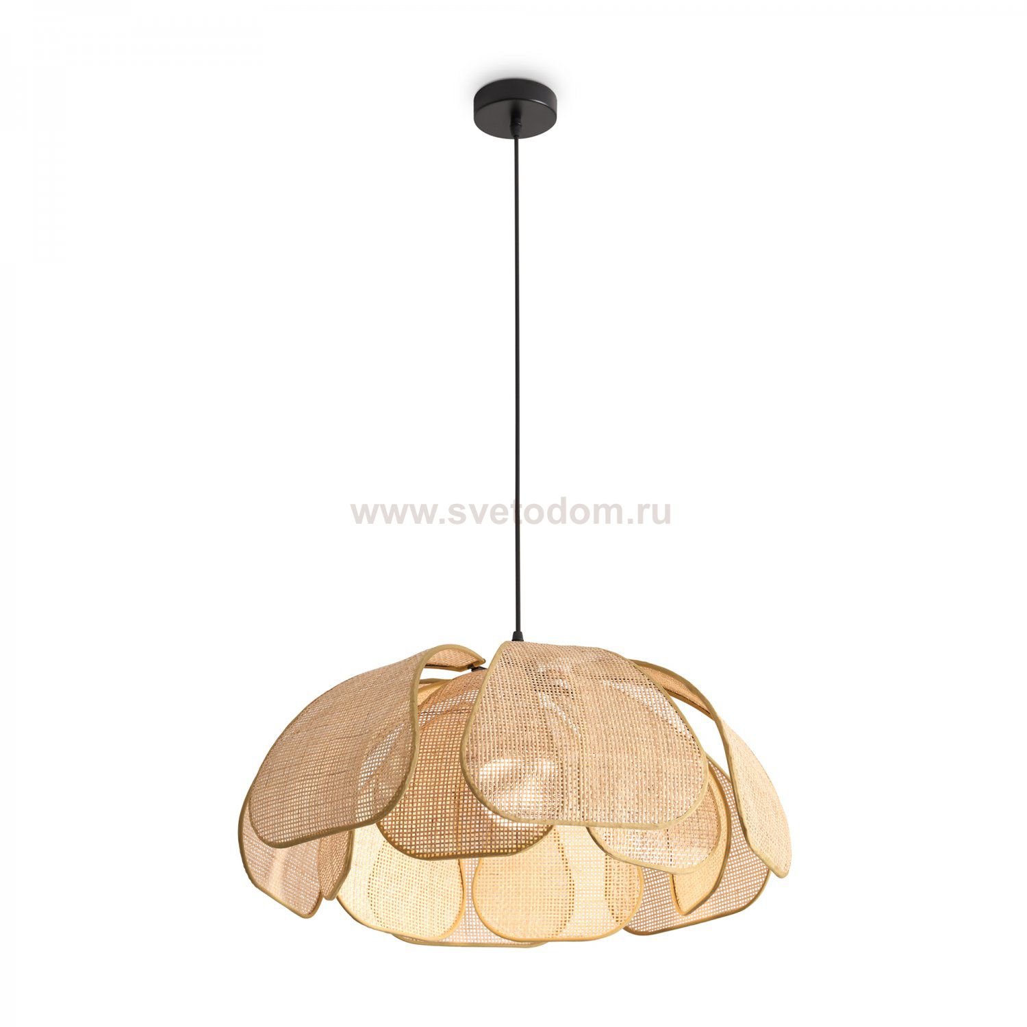 Материал арматуры — металл, цвет — черный. Подвесная модель с цоколем E27. Абажур выполнен из натурального ротанга бежевого цвета в форме цветка. Использование природных материалов и изящная форма светильника делают его подходящим для интерьеров в стиле французского прованса или балийском стиле.