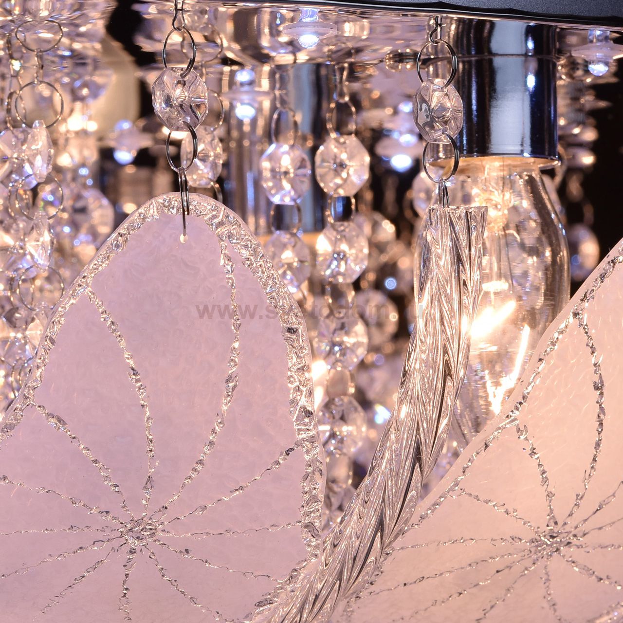 Металлическое основание цвета матового хрома, декоративные элементы из стекла и прозрачного хрусталя Место применения