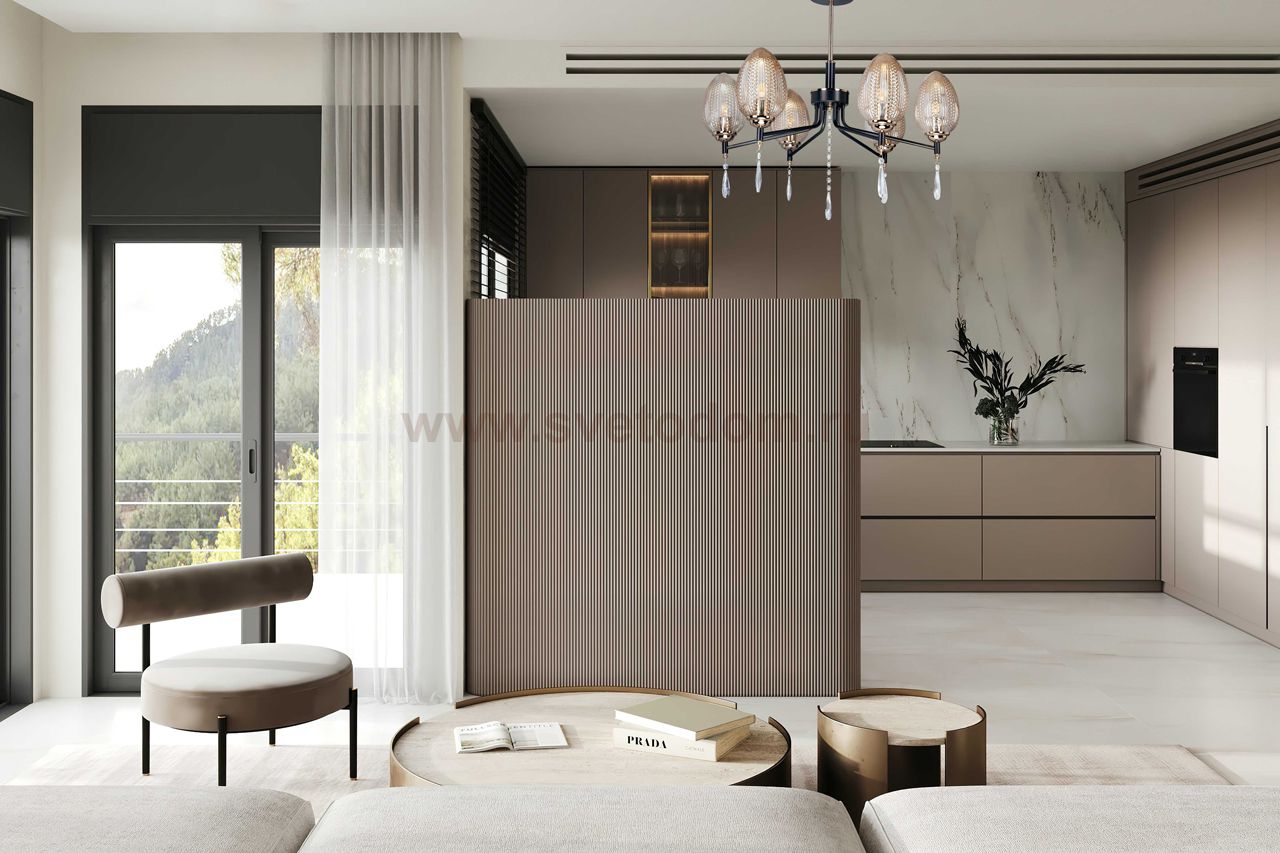 Компактный размер потолочной люстры позволяет сохранить пространство комнаты при стандартном потолке.