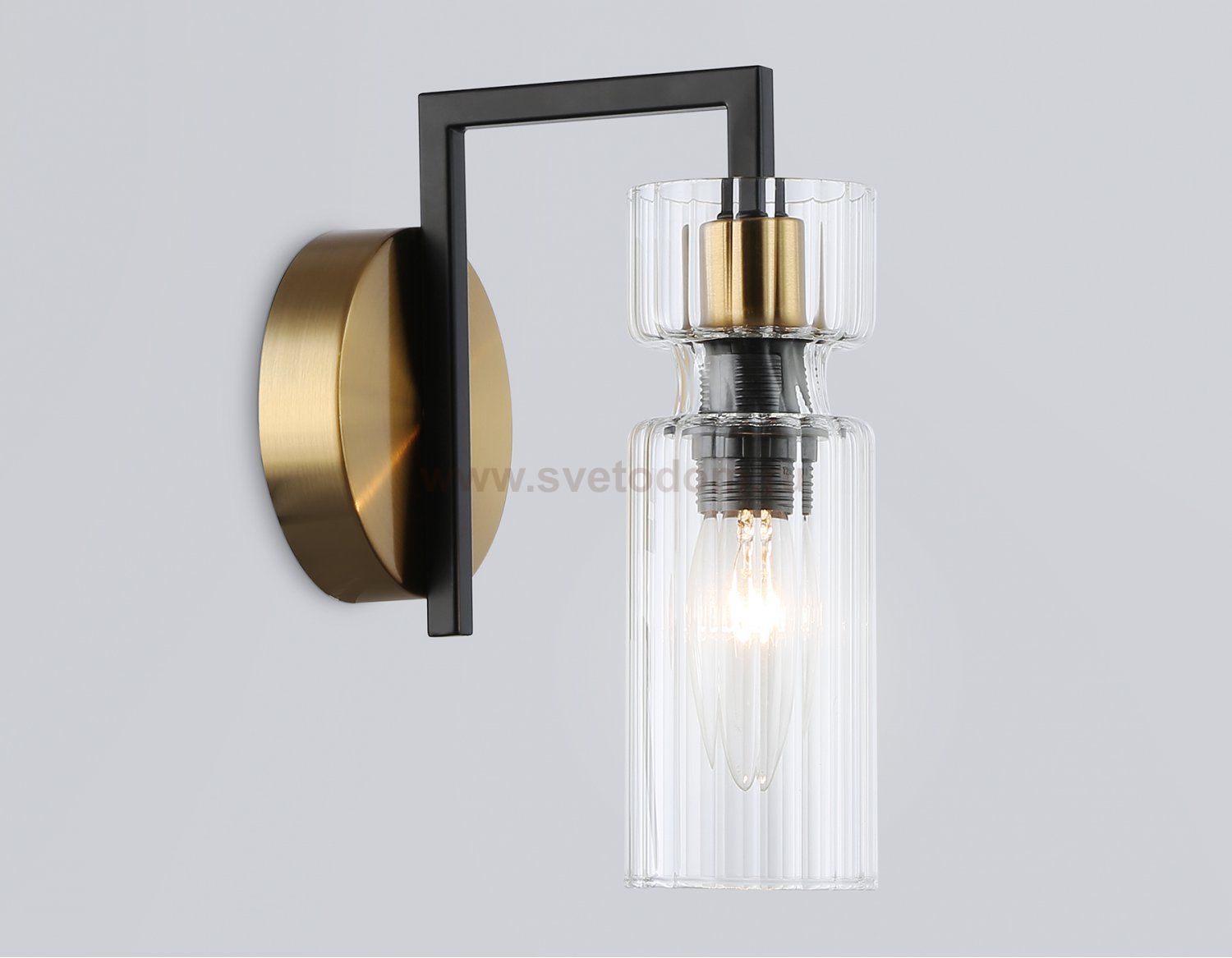 Настенный светильник из коллекции HIGH LIGHT. Модель LH56119 представлена в стиле модерн. Светильник выполнен из стеклянного прозрачного плафона и металлического каркаса черного цвета и цвета латунь. Для данной модели подойдут лампы с цоколем Е14. Светильник будет прекрасным дополнением в любом помещении.