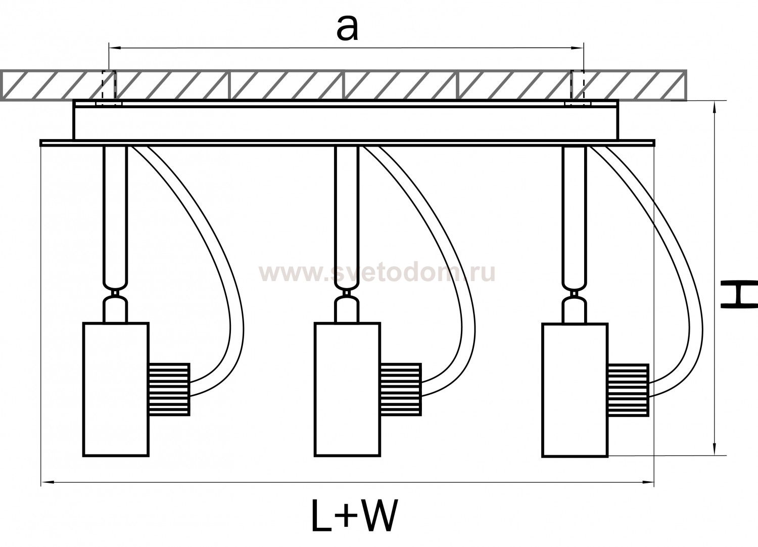 Крепление: a407; Внешние габариты: W100 L450 H175; Материал - основание/плафон: металл; Цвет-основание/плафон: черный хром; Лампа: 220В HP16 GU10 max 50Вт/без лампы