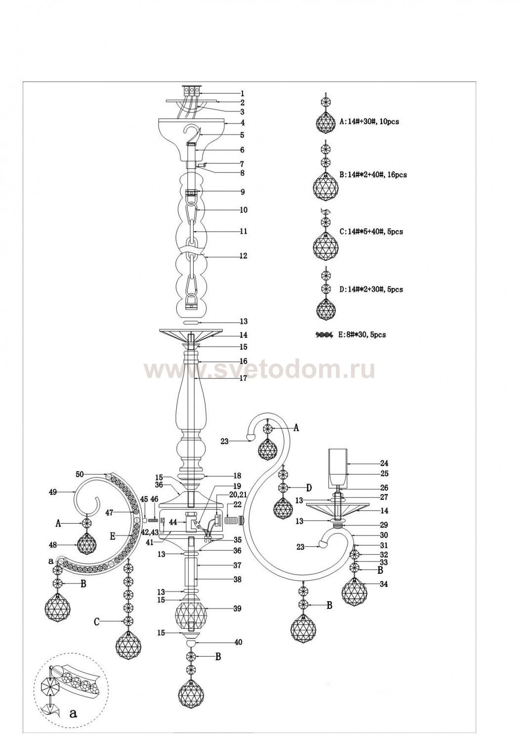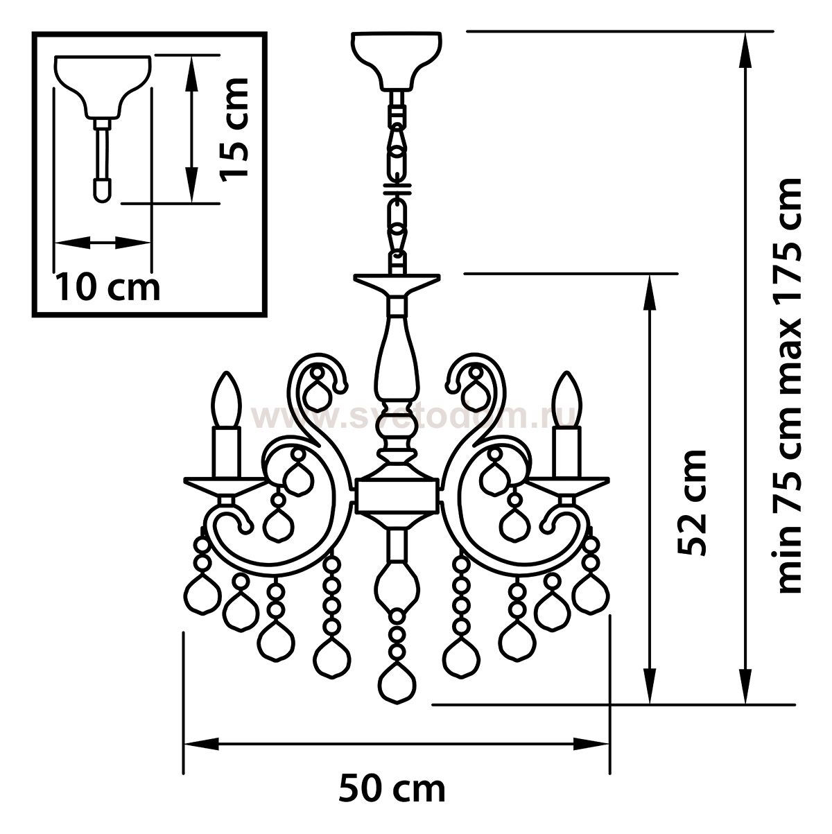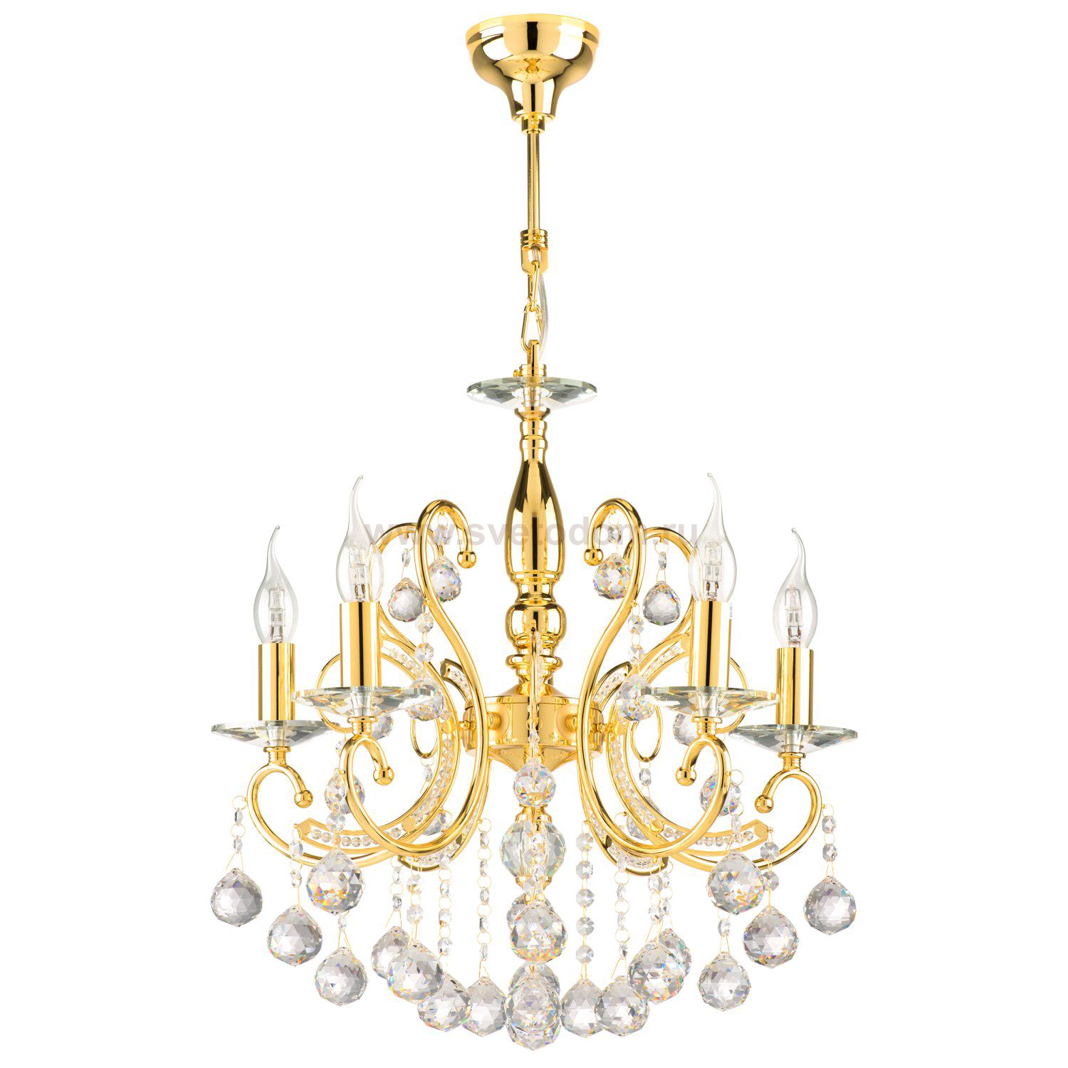 Высота min-max (см): 75-175; Ширина (см): 50; Вес (кг): 7,55; Кол-во ламп: 5xE14; Мощность max (W): 60; Цвет основания/цвет стекла или абажура: Gold/Cristal Clear;