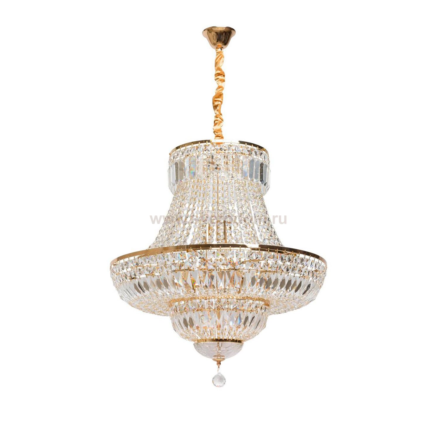 Роскошные переливы, помпезный, торжественный стиль - люстра из коллекции «Диана» - настоящее произведение искусства. Металлическое основание цвета французского золота в сочетании с декоративными элементами из высококачественного хрусталя различных видов огранки создают ощущение, что перед нами драгоценность, воплощение которой требует поистине филигранной работы. Люстра театрального типа для помещений с высокими потолками, состоит из нескольких ярусов, что придает неповторимое и торжественное величие, такой предмет интерьера достоин царских покоев. Множество мерцающих капель хрусталя создают великолепную, многогранную, непередаваемую игру света. Снизу люстра декорирована хрустальной чашей. Хрусталь скреплен в хрустальные нити с помощью папильонов в форме маленьких бабочек. Если вы ценитель эксклюзивной роскоши, лучшего варианта, чтобы подчеркнуть свой безупречный вкус, не найти. Площадь освещения порядка 18 кв.м.