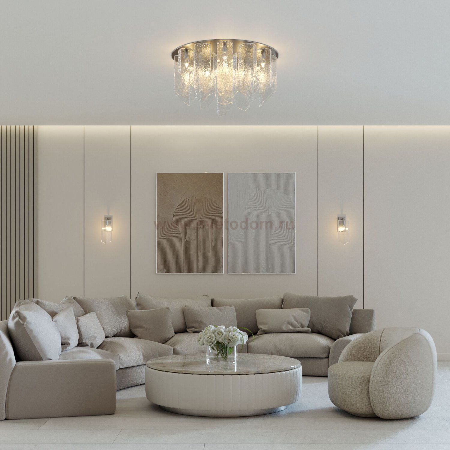 <p>Серия Iceberg — настоящее сокровище для ценителей природных форм. Плафоны светильника выполнены в форме шестиугольника, отсылающего к кристаллической структуре льда. Прозрачное стекло, обработанное вручную по технике кракелюр, покрыто сетью тончайших трещинок. Эти «морозные узоры» наполняют интерьер дыханием Арктики. </p> <p>Каждый плафон уникален: ассиметричное нанесение кракелюрного слоя превращают светильник в арт-объект, который оживает при включении.</p> <ul> <li>В качестве источника света используются сменные лампы с цоколем Е27.</li> <li>Коллекция включает в себя потолочную люстру на 10 рожков и бра.</li> </ul> <p>Покупая любой светильник в интернет- магазине Минимир вы получаете ещё 2 года дополнительной гарантии.</p> <p>В интернет-магазине Минимир вы можете купить умную потолочную люстру с доставкой по Москве, Санкт-Петербургу и России.</p> <p> </p> <p> </p>