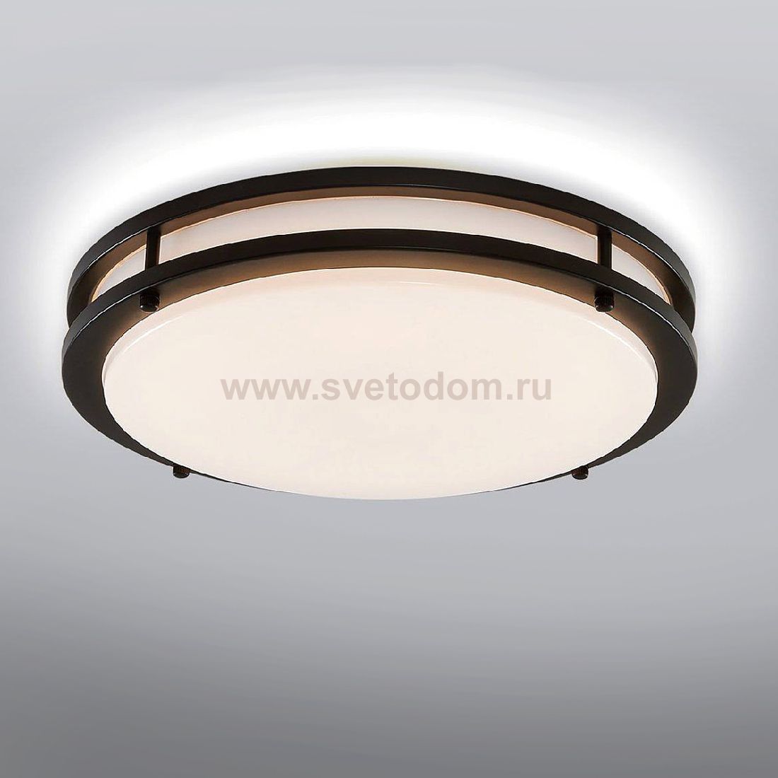 Диаметр 35.5 см, Высота 7.5 см, Светодиодный светильник, Уровень мощности 100-50-10% управляется выключателем, Корпус из металла и рассеиватель из пластика, Влагозащита IP44 Комментарий