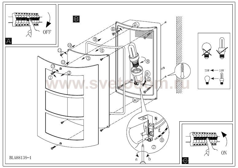 Рекомендуемая мощность 1 лампы: W