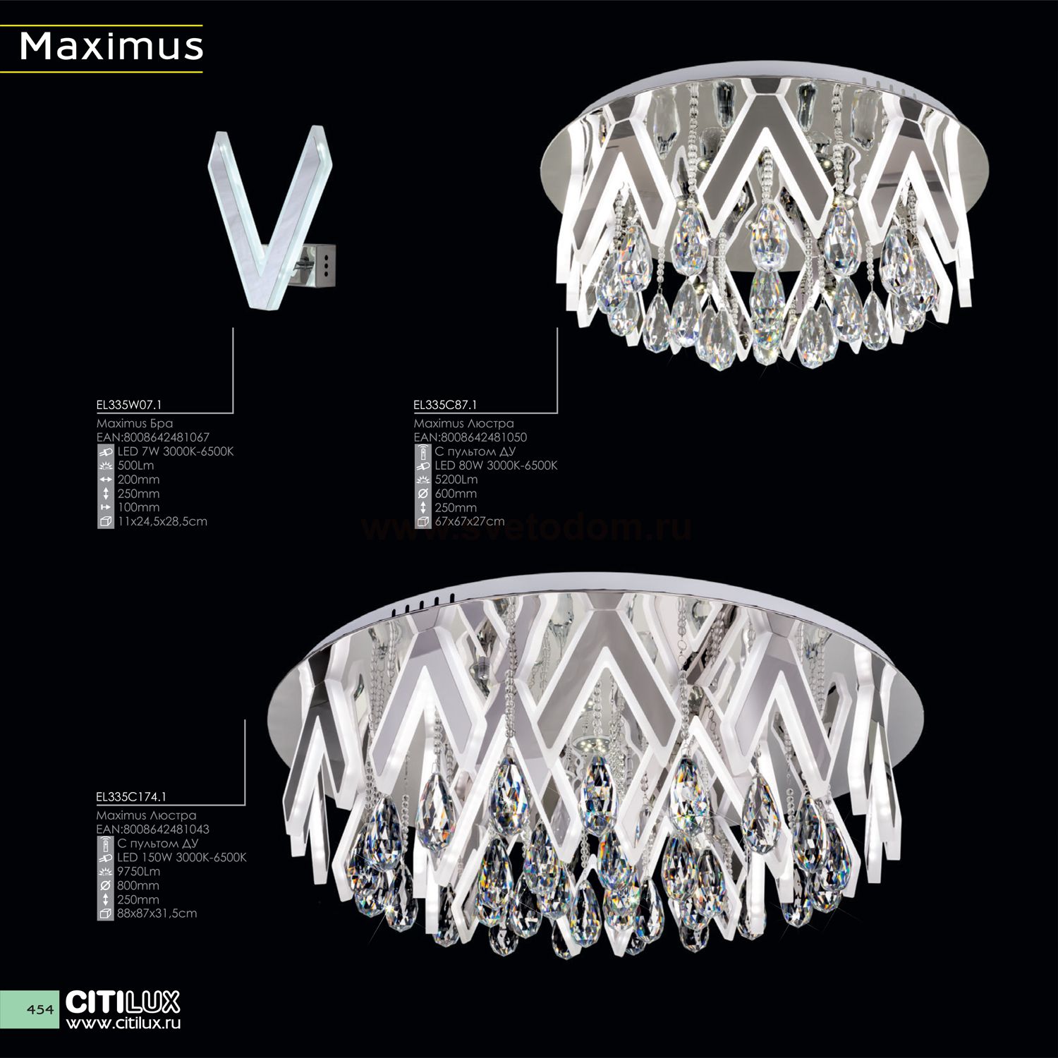 EL335C87.1 Citilux MAXIMUS сделает Ваше помещение современным, стильным и запоминающимся! Наиболее эстетически привлекательно и функционально модель будет смотреться как в зале, гостевой, холле или другой комнате. А в совокупности с настенными или напольными светильниками из этой же коллекции, сделает интерьер по-дизайнерски законченным и профессиональным.