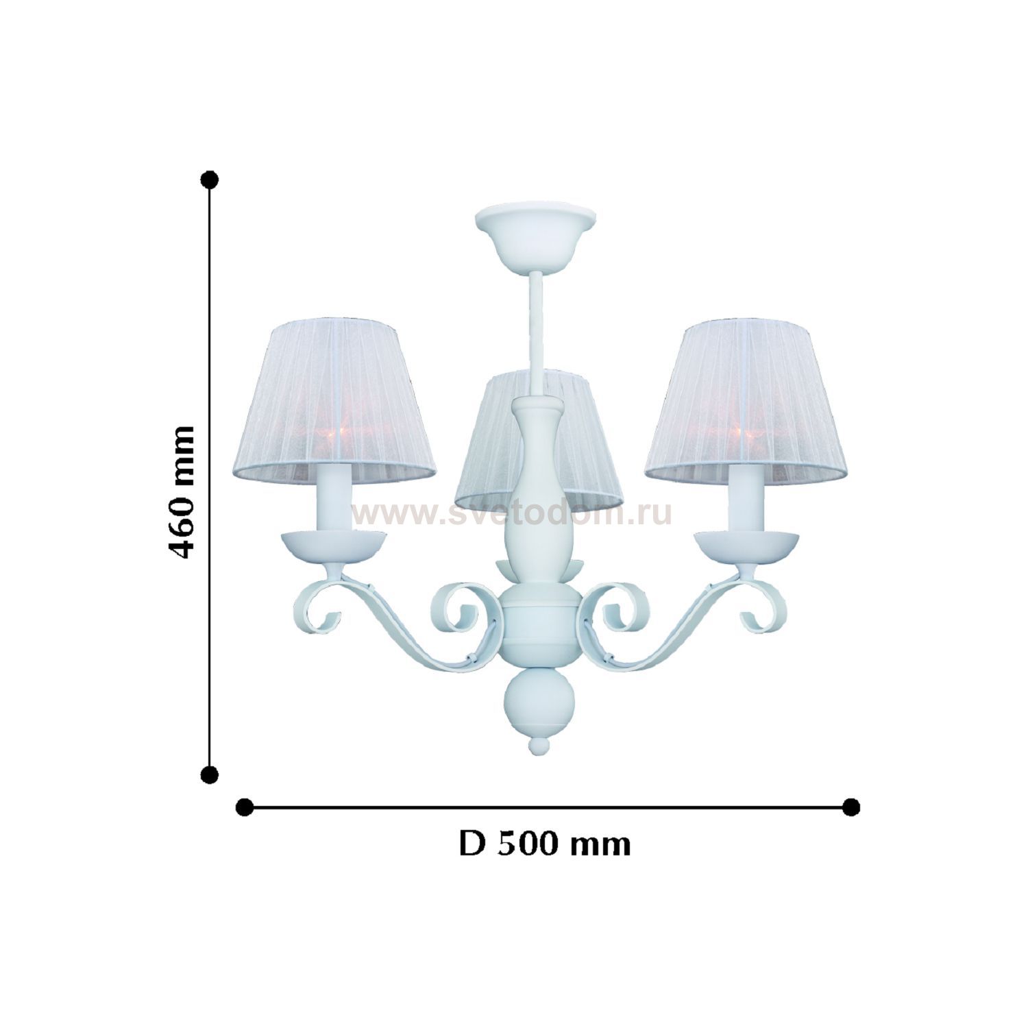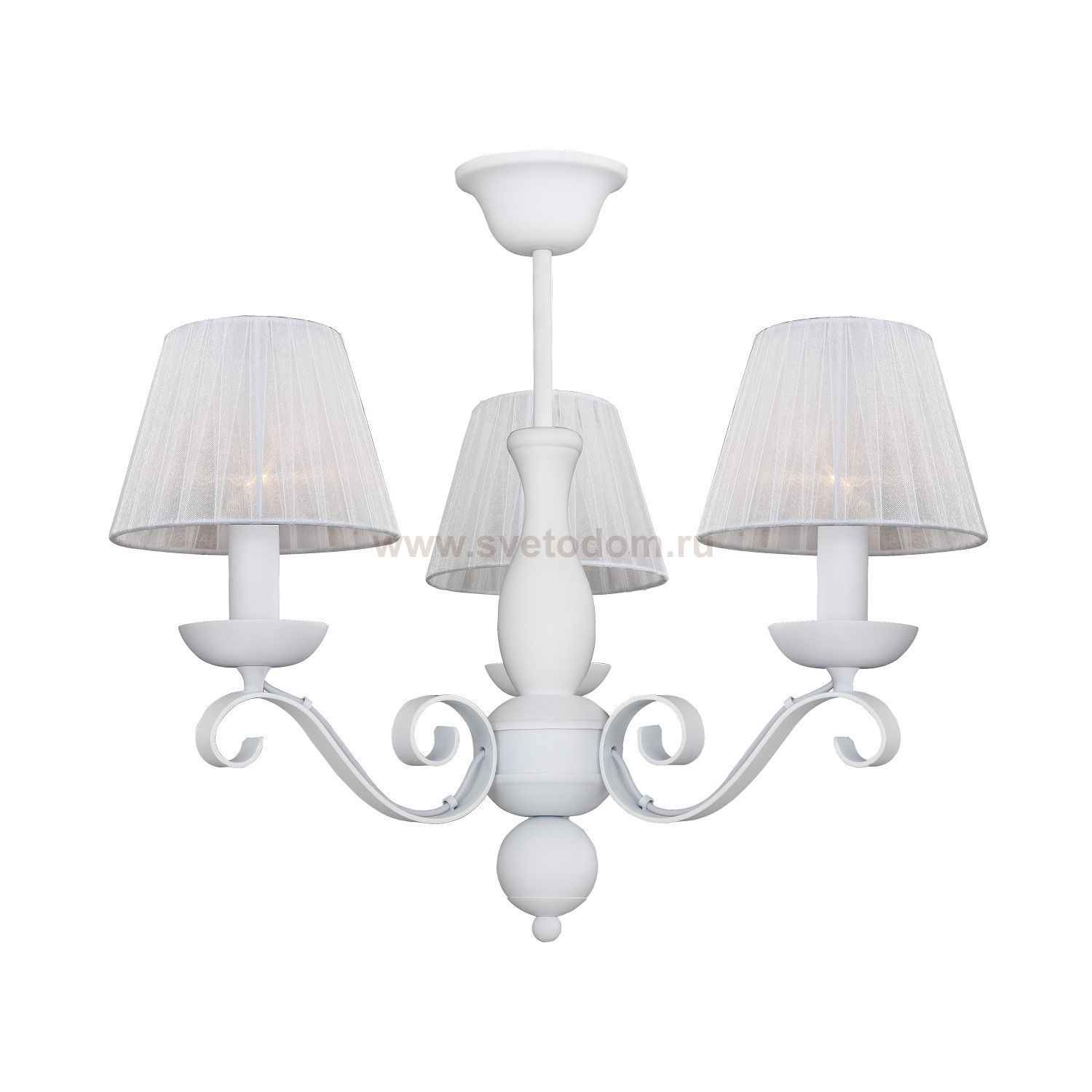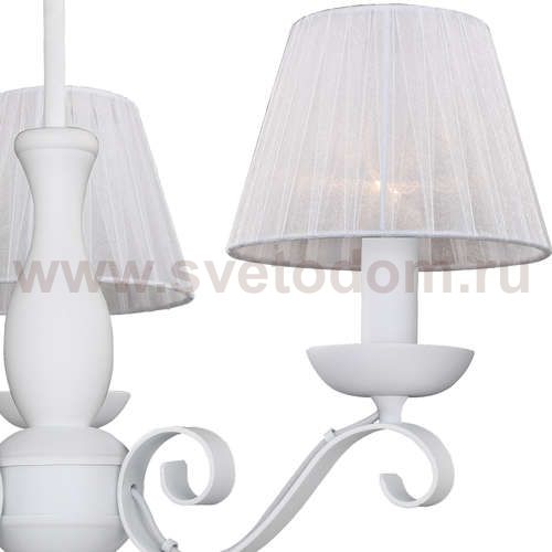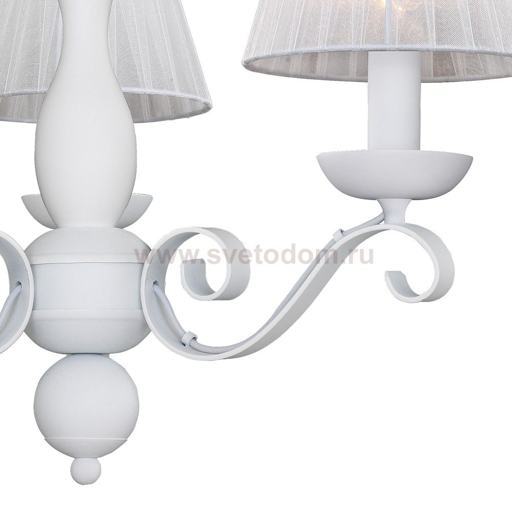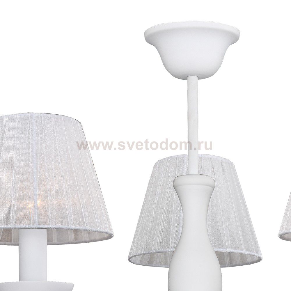 Светильники окрашены в белый цвет и дополнены абажурами из белой органзы. Материал плафона