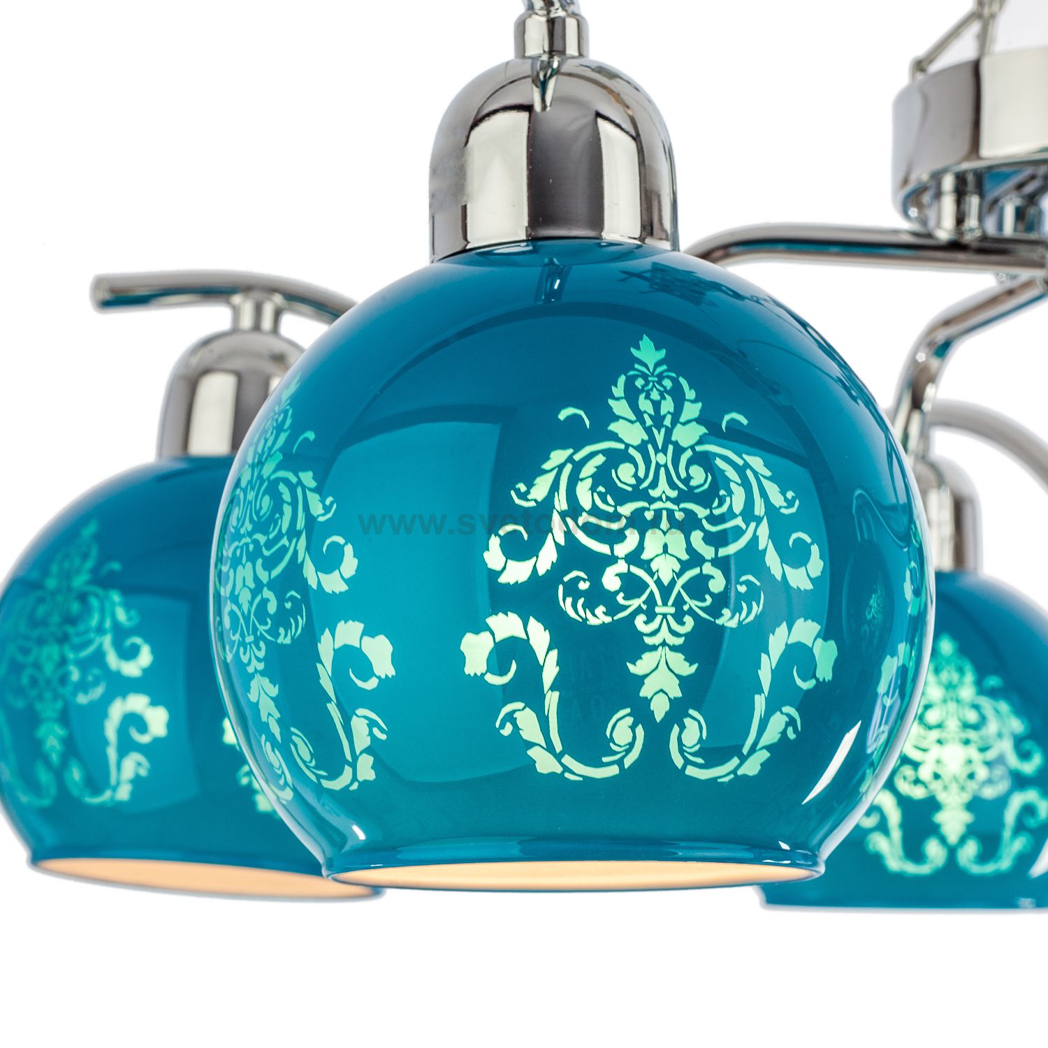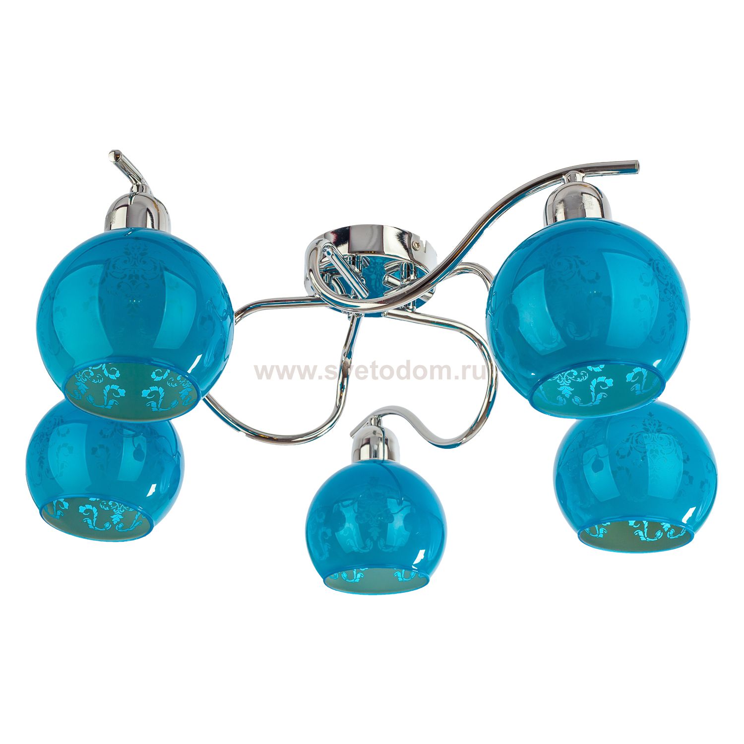 Потолочная люстра G91029/5CR BL от бренда Gerhort. Каркас выполнен из материала металл, цвет хром. Плафоны (светорассеиватели) выполнены из материала стекло, цвет голубой. Цоколь E14 рассчитан на лампы максимальной мощности до 40 Вт, а максимальная площадь освещения составит до 11 м?.