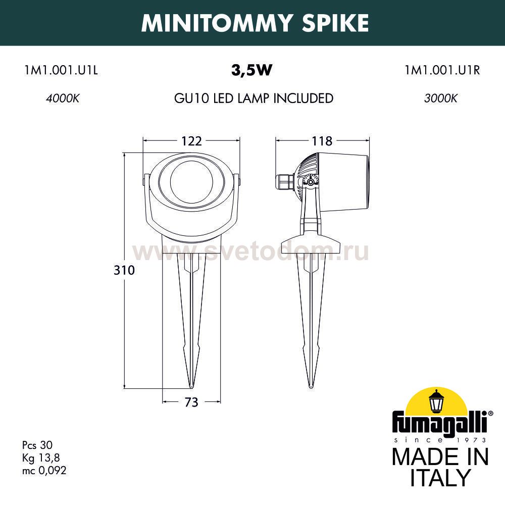 Касаемо артикула 1M1.001.000.LXU1L важно знать - Ландшафтные светильники FUMAGALLI серии MINITOMMY SPIKE - изготовлена в Италии. Из за малого размера используются для подсветки небольших элементов ландшафтного дизайна, кустов, деревьев, альпийских горок и других уличных объектов где требуется направленное "акцентное" освещение. Высокая степень защиты от пыли и влаги IP 66 позволяет использовать декоративные прожектора MINITOMMY SPIKE на улице без каких либо ограничений. Для крепления ландшафтного прожектора на поверхность (пол, потолок, стену) можно применить светильник из этой же серии MINITOMMY. Данный светильник можно использовать для акцентной архитектурной подсветки, светодизайна. Корпус изготовлен из современного вандалостойкого не горючего полимера RESIN. Прочного, окрашенного в массе, не ржавеющего и не выгорающего на солнце, не проводящего электричество. Рассеиватель выполнен из антивандального, не мутнеющего и не горючего PMMA. Срок службы светильника - не менее 20 лет. Не требуется трансформатор. Напряжение питания - 220 В. Температура эксплуатации от -60 до +90. При заказе требуется выбрать цвет корпуса.