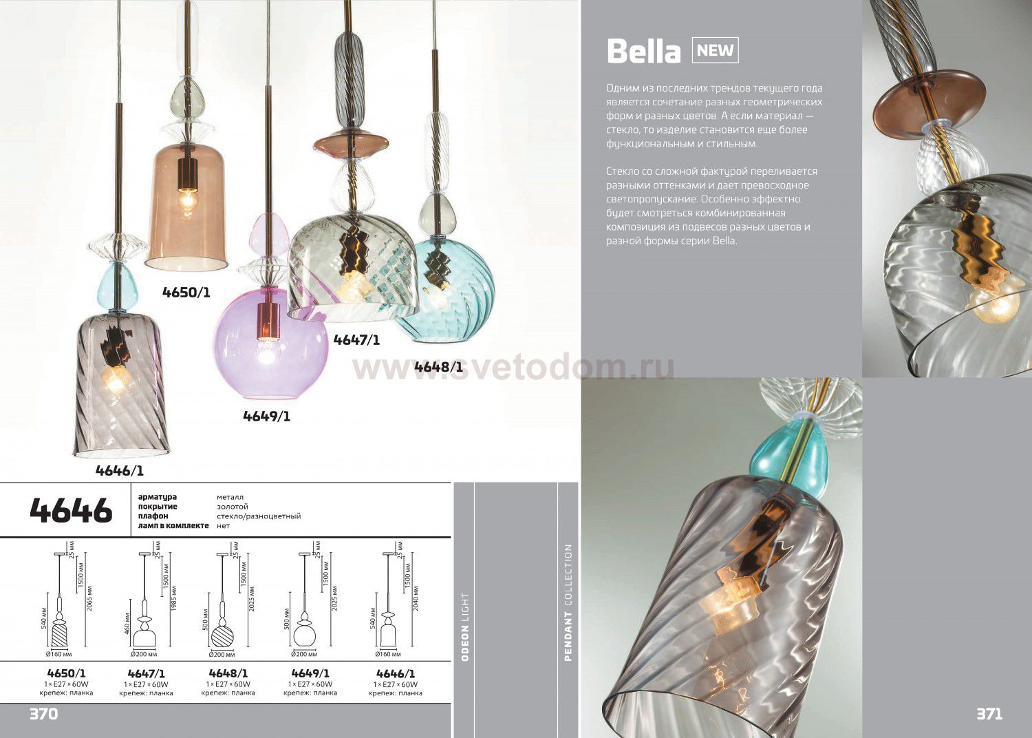 Одним из последних трендов текущего года является сочетание разных геометрических форм и разных цветов. А если материал - стекло, то изделие становится еще более функциональным и стильным. Стекло со сложной фактурой переливается разными оттенками и дает превосходное светопропускание. Особенно эффектно будет смотреться комбинированная композиция из подвесов разных цветов и разной формы линии Bella.