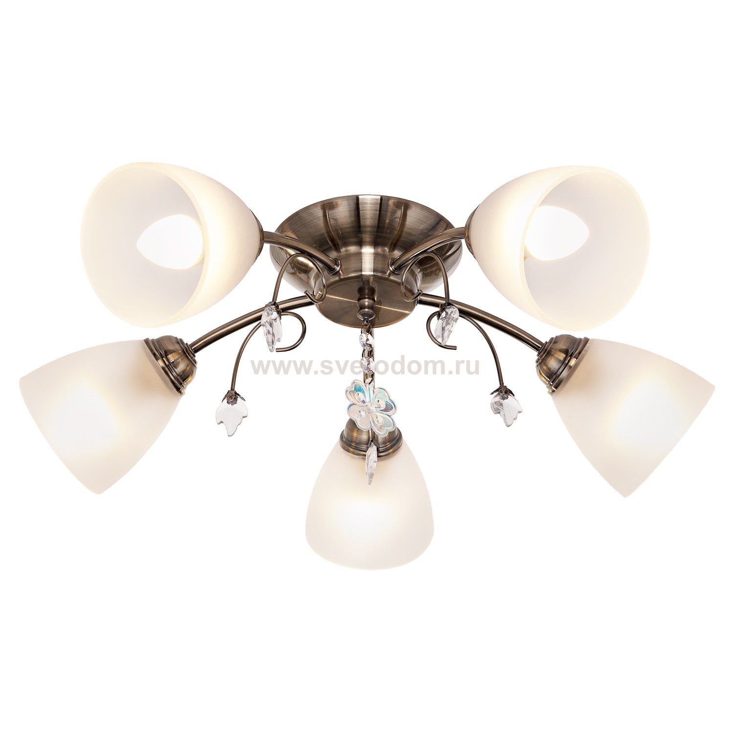 Потолочный светильник 53461/5AB WT от бренда ЭкономСвет. Каркас выполнен из материала металл, цвет античная бронза. Плафоны (светорассеиватели) выполнены из материала стекло, цвет белый. Цоколь E27 рассчитан на лампы максимальной мощности до 40 Вт, а максимальная площадь освещения составит до 11 м?.