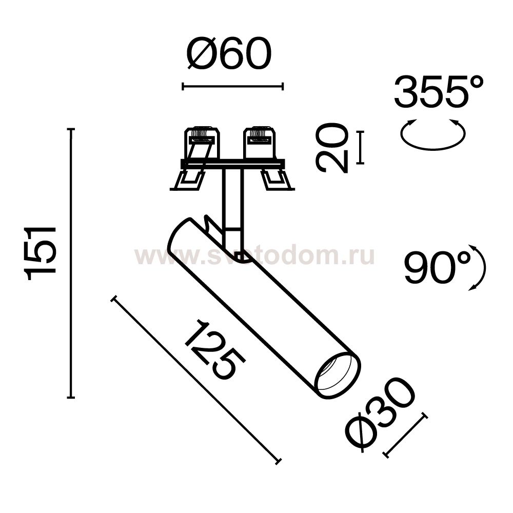 Материал корпуса – металл; цвет – белый, чёрный и латунный. Миниатюрные размеры. Плафон из двух частей. Горизонтальный и вертикальный поворотный механизм. LED-источник света. Цветовая температура – 3000К или 4000К. Высокий коэффицициент цветопередачи >90.