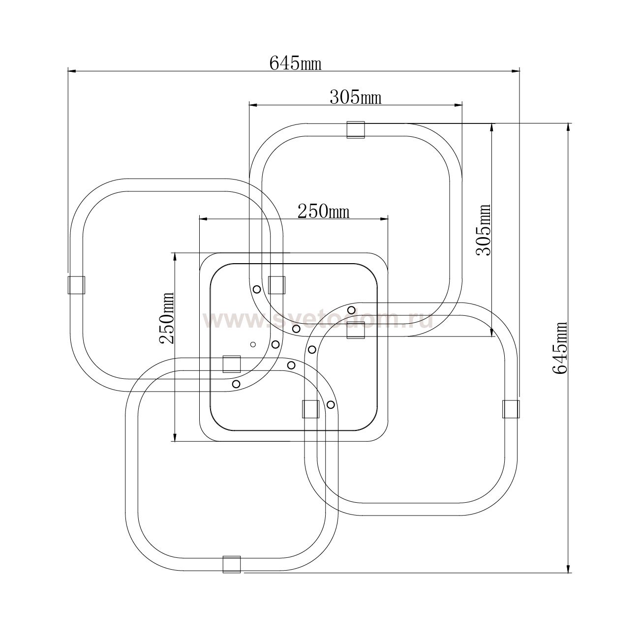 Потолочный светодиодный светильник 91Вт, 5380Лм, 3000-6500К, Ra>80, плавная регулировка мощности, изменение цветовой температуры, ночник, металл/акрил, хром