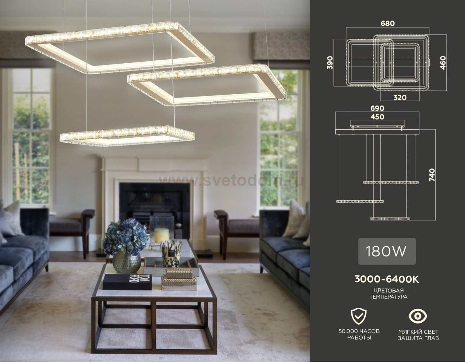 Подвесной светодиодный светильник из коллекции ACRYLICA Ice. Великолепная модель FA1761 выполнена в современном стиле Неоклассика. Бесподобный хрустальный декор придает особый шик светильникам этой коллекции. Эта модель изготовлена из металлического корпуса золотого цвета. Благодаря встроенным в конструкцию светодиодам, вы можете с уверенностью забыть о поиске или замене дополнительных ламп. С помощью мобильного приложения, а так же радиоуправляемого пульта вы сможете регулировать цветовую температуру, яркость освещения и ночной режим. Эта модель подходит для натяжных потолков и будет прекрасным дополнением в гостиной, спальне или детской комнате.