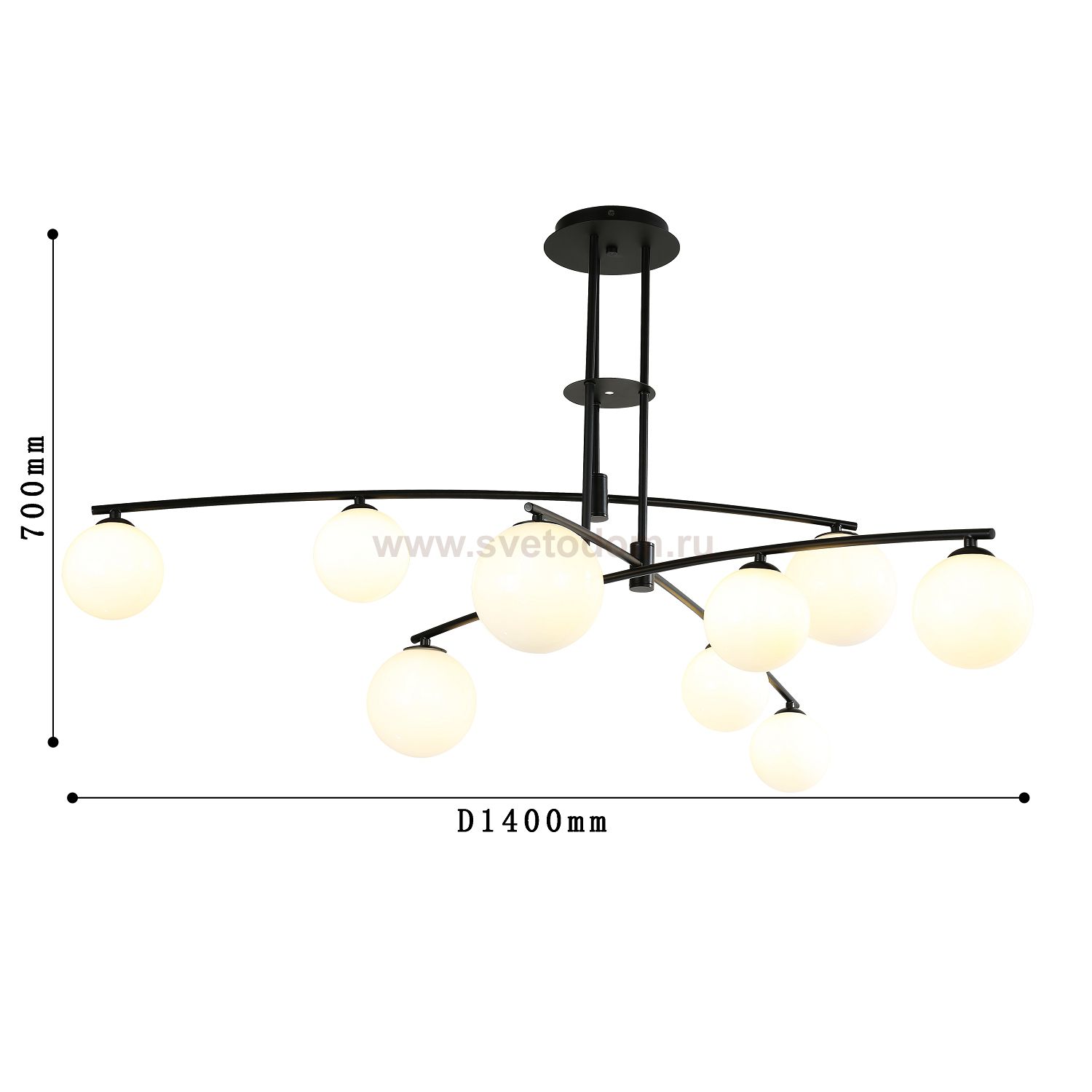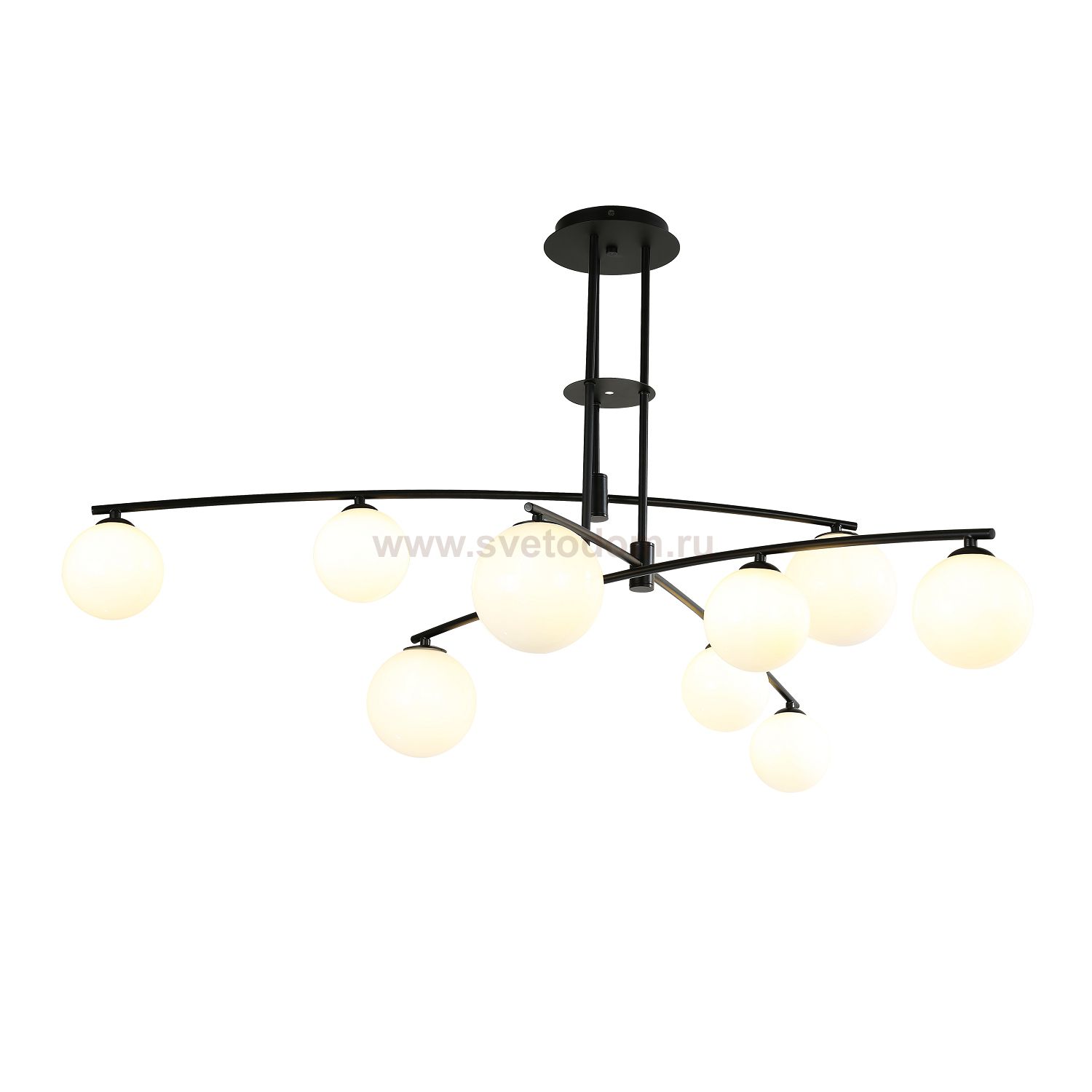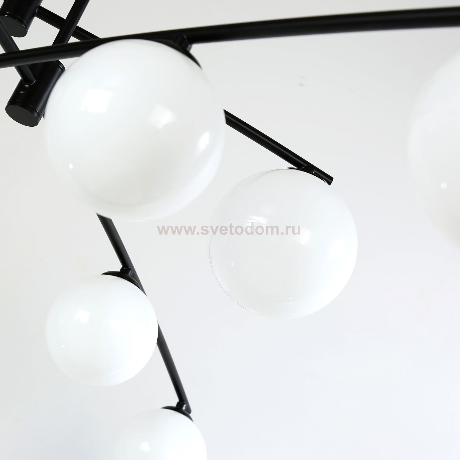 каркас матового черного цвета, плафоны из выдувного белого стекла дуплекс, лампу G9 можно менять Цвет декора