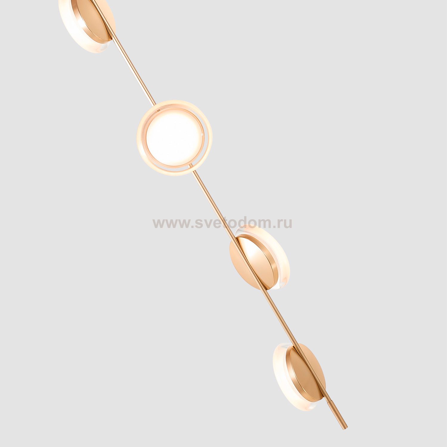 Оригинальная форма акриловых плафонов с золотым каркасом, диск с прозрачным объемным ободком и плоской матовой внутренней частью с встроенным модулем Серия