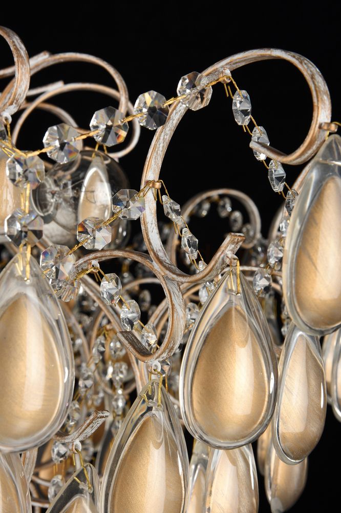 Серия Charbol заслуживает особого внимания благодаря интересному цветовому совмещению отделки арматуры, каплевидным кристаллам из акрила, а также бусинам, которые образуют живописную композицию.